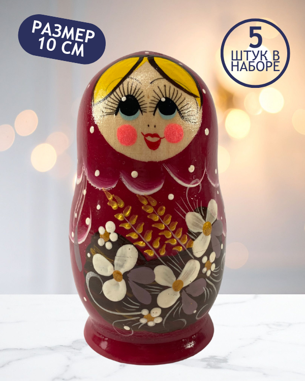 Аннотация: Матрешка Оксана бордовая 5 в 1, 10 см - K11