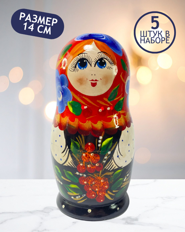 Аннотация: Матрешка Ольга c рябиной 5 в 1, 14 см - K22
