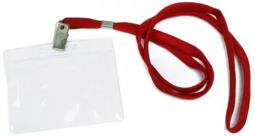 Горизонтальный бейдж на текстильной ленте используется для размещения именной карточки.
