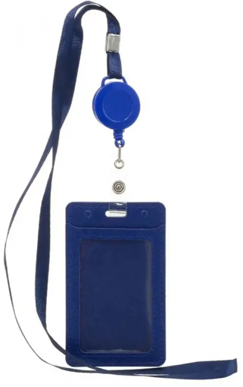 Бейдж, со шнурком и рулеткой, синий