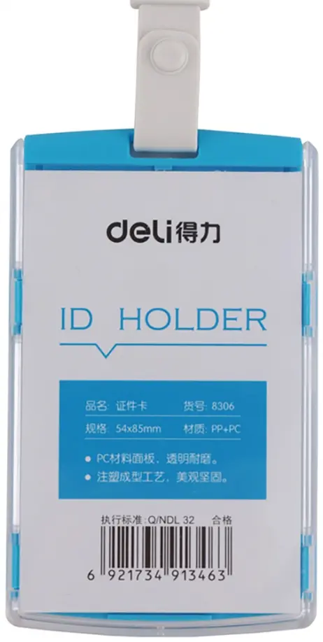 Бейдж вертикальный для пропуска "Deli", цвет: голубой, 60х98 мм, арт. 8306blue