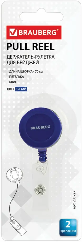 Держатель-рулетка Brauberg предназначена для крепления бейджей, магнитных карт, пропусков, ключей и мелкого инструмента. Рулетка с металлическим клипом подходит для ношения на ремне или поясе.