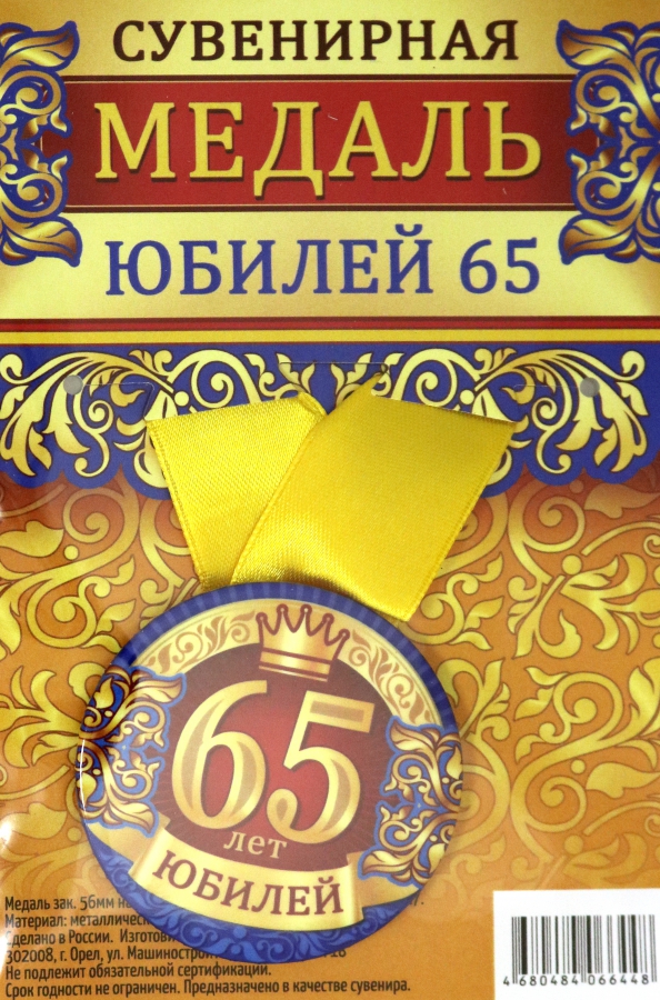 Медаль закатная "Юбилей 65", 56 мм