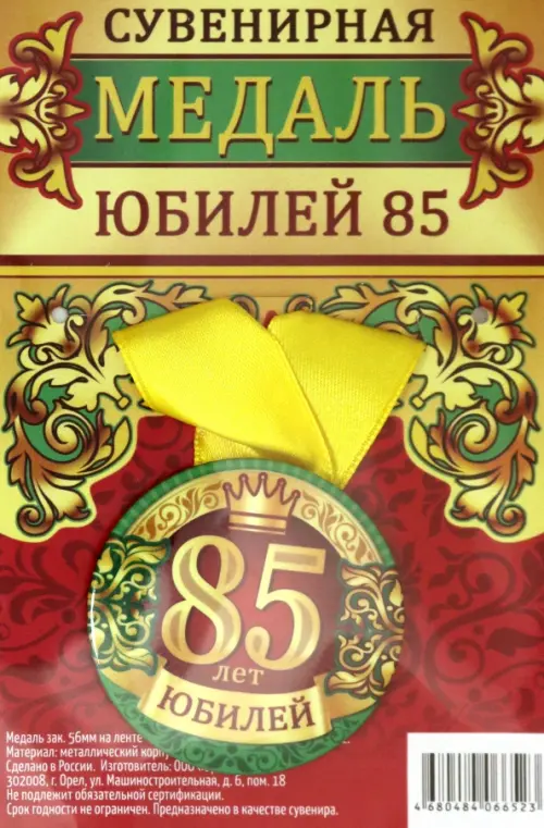 Медаль закатная "Юбилей 85", 56 мм
