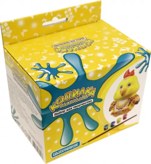 В комплекте: копилка, краски 4 цветов, кисточка.