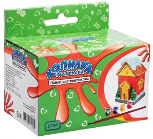 В комплекте: копилка, краски 4 цветов, кисточка.