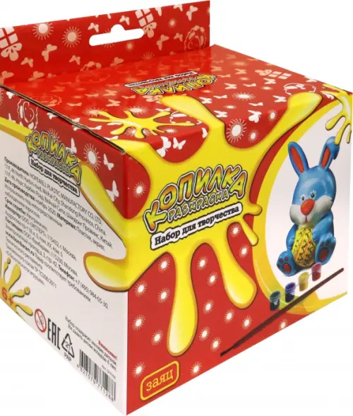 В наборе: акриловые краски, кисточка, копилка.