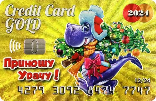 Магнит Символ Года 2024. Кредитка Gold. Елка