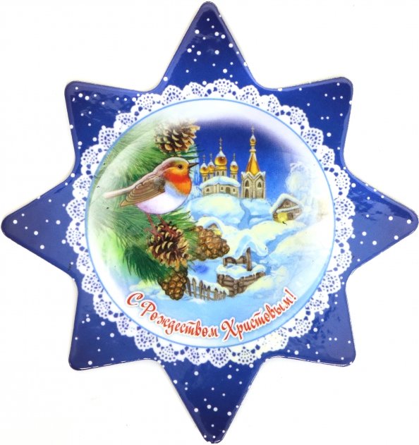 Магнит на картоне "С Рождеством Христовым! Зарянка", 90х95 мм