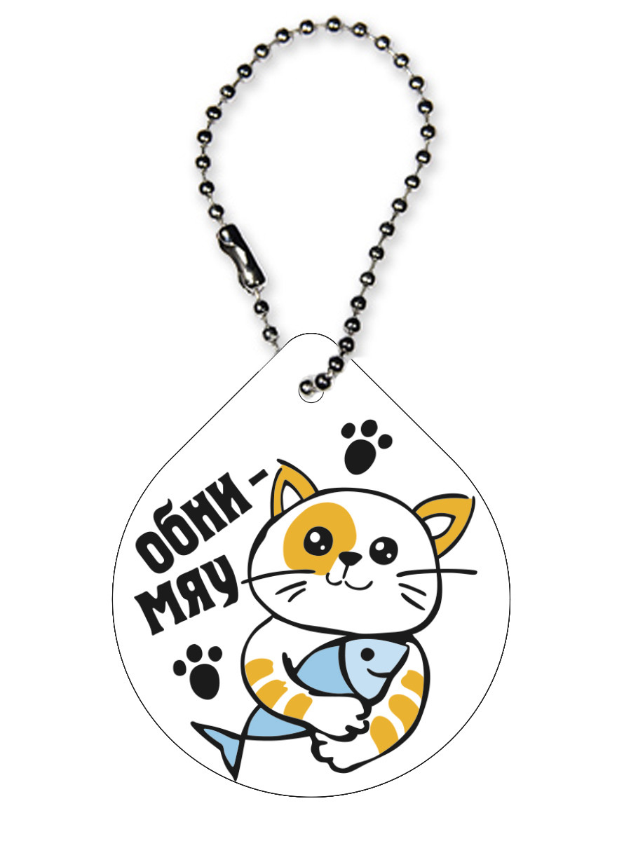 Брелок светоотражающий "Капля. Обни-мяу", 48х56 мм
