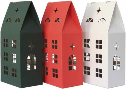 Комплект новогодних домиков с подсветкой предназначен для праздничного оформления интерьера, например, пространства под елкой. Фигурные домики с окошками напоминают сказочный город из детских грез. Необычные новогодние украшения в виде домиков можно расписать добрыми пожеланиями, украсить аппликацией из фольги, мишуры. Домики из плотного картона не только красивы, но и вместительны, при желании в них найдется место и для подарков. Светодиодная гирлянда эффектно подсветит домики, создаст ощущение таинственности и предвкушение наступающего праздника.