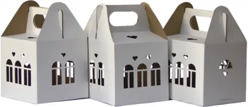 Комплект новогодних домиков предназначен для праздничного оформления интерьера, например, пространства под елкой. Фигурные домики с окошками напоминают сказочный город из детских грез. Необычные новогодние украшения в виде домиков можно раскрасить, расписать добрыми пожеланиями, украсить аппликацией из фольги, мишуры. Домики из плотного картона не только красивы, но и вместительны, при желании в них найдется место и для подарков.