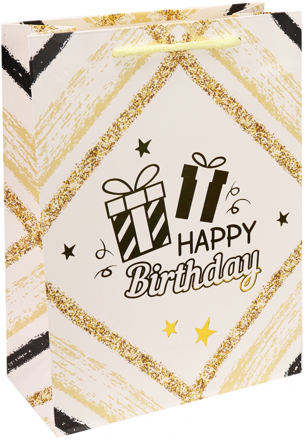 Подарочный пакет идеально подойдет для эксклюзивной упаковки любого подарка! Интересный дизайн усилит приятное впечатление от презента. Пакет с матовой ламинацией и тиснением фольгой. Хорошо держит форму. Текстильные ручки в виде шнура. Плотность: 210 гр. Размер: 18x24x8,5 см (М).