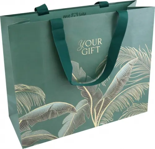 Пакеты MESHU - беспроигрышный способ преподнести подарок красиво. Размер подарочного пакета - 32*26*12 см. Изготовлен из плотного мелованного картона с матовой ламинацией и отделкой фольгой.