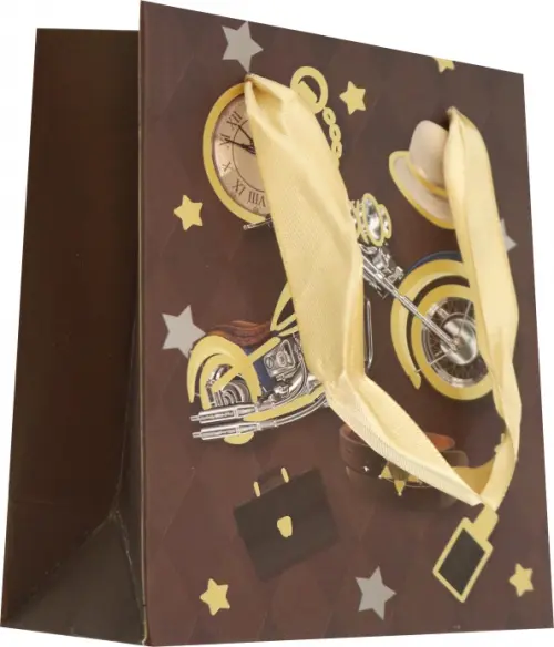 Выполнен из плотной бумаги 210 г/кв.м, для удобной переноски на пакете имеются две ручки из атласной ленты.