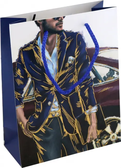 Пакет подарочный бумажный "deVENTE. Men" вертикальный, размер 18x23x8 см, с фольгированием, бумага 210 г/м2, ассорти 4 дизайна