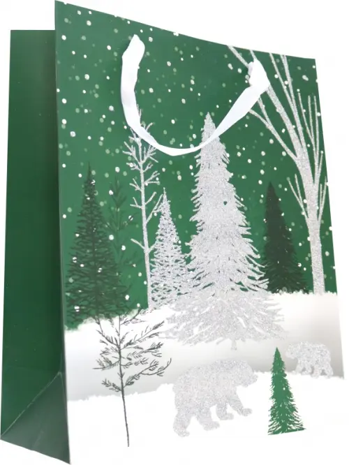 Выполнен из плотной бумаги 210 г/кв.м, для удобной переноски на пакете имеются две ручки из атласной ленты.