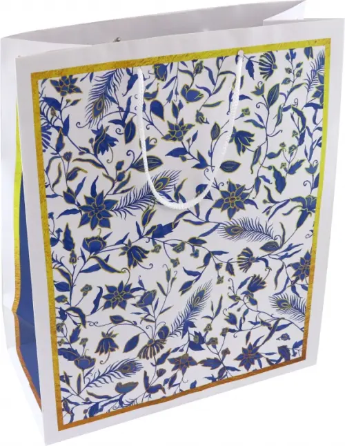 Бумажный пакет для сувенирной продукции с ламинацией, с шириной основания 26 cм, плотность бумаги 140 г/м2 / 26x32,4x12,7 см.