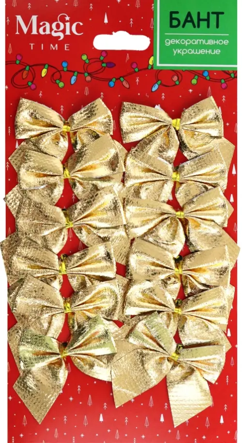 Бант "Мерцание золота" - это классическое новогоднее украшение, которое добавит стиля в любом новогоднем убранстве. Банты подходят под любой декор, именно поэтому его так любят и взрослые, и дети. В наборе 12 бантов, выполненных из полиэстера.