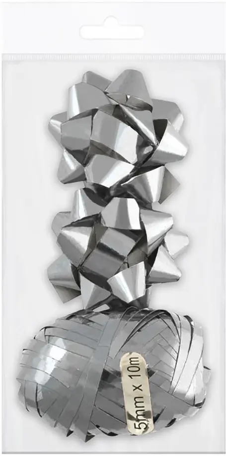 Набор для оформления подарков: декоративный бант из полиэтилентерефталата с полипропиленовым ламинированием, на клеевом основании из поливинилхлорида (2 шт.), декоративная лента из полипропилена, ширина 0,5 cм, длина 10 м, толщина 0,12 мм (1 шт) / 4х19х9,8см