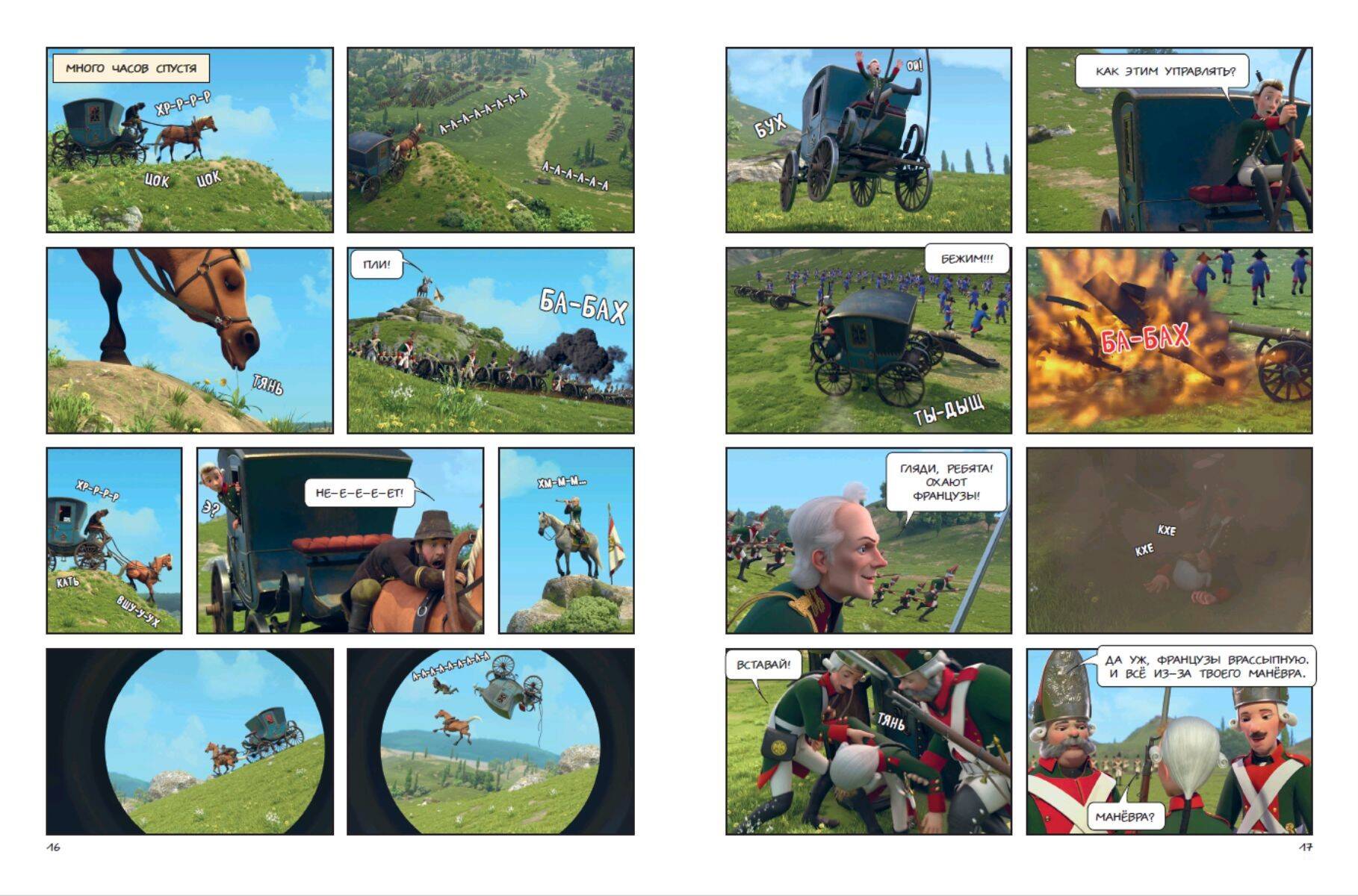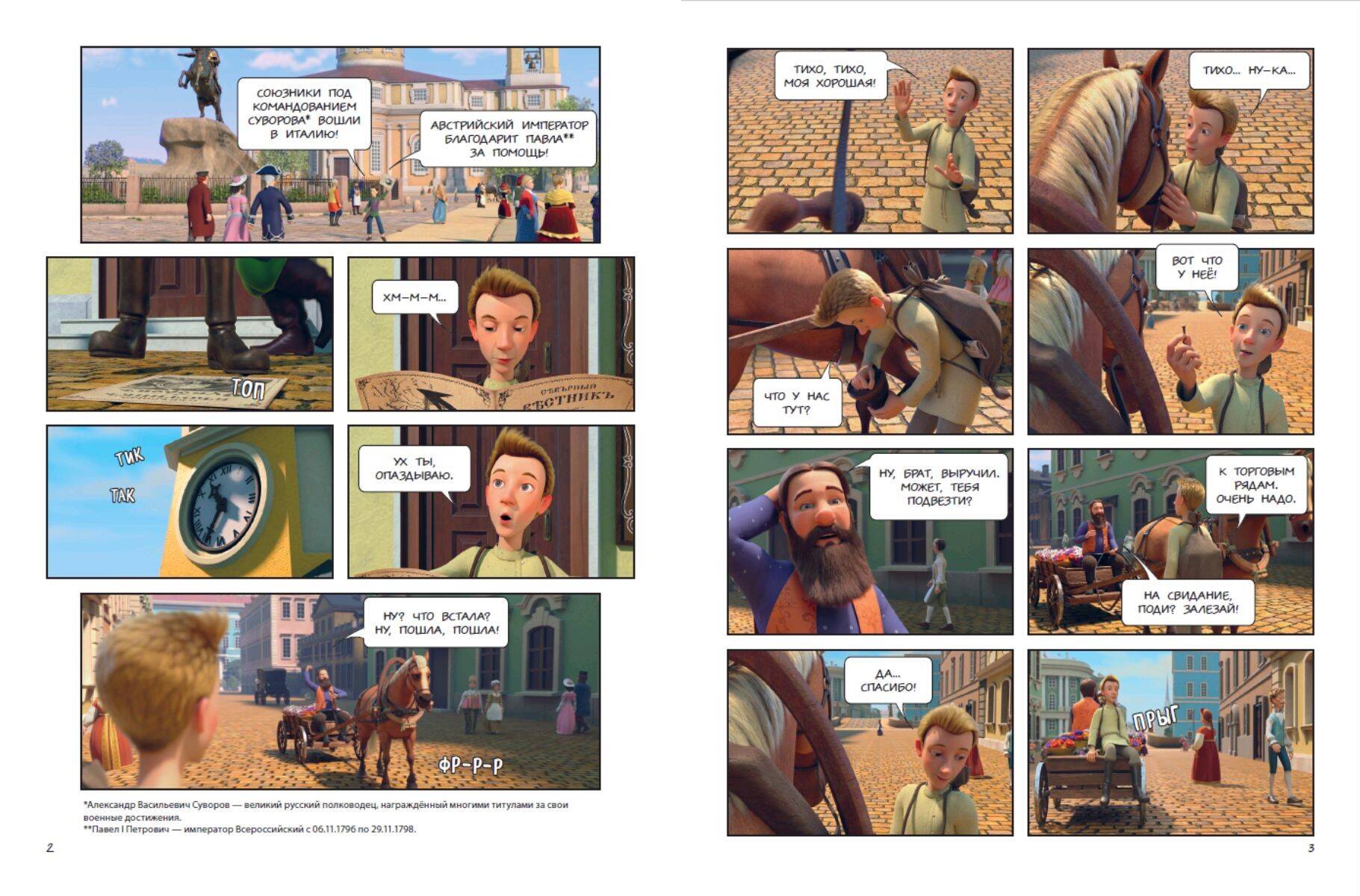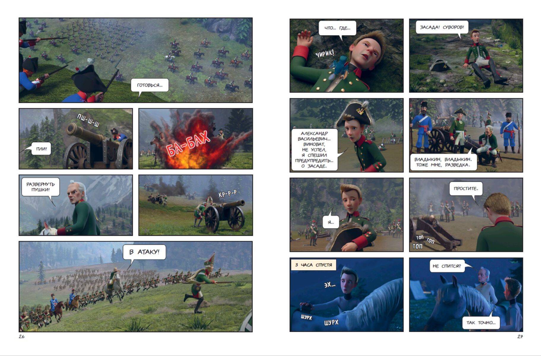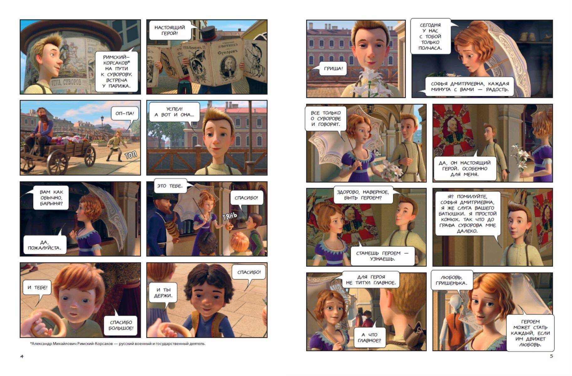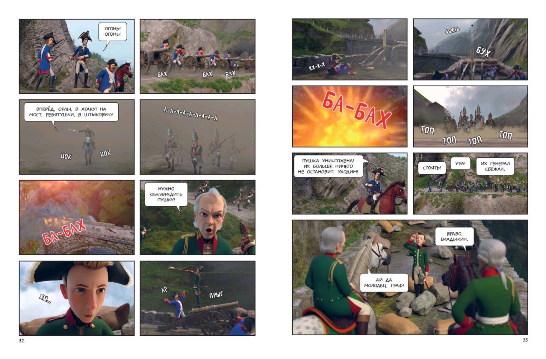 Встречайте комикс по мультфильму о выдающейся исторической личности, отваге, чести и настоящей любви от студии «Союзмультфильм»! Привычный детям 3D-стиль, захватывающий и яркий сюжет, важные моральные уроки и небольшое количество текста делают книгу идеальным проводником в мир ключевых исторических личностей! В повествование специально добавлены элементы магии и чуда, чтобы современный ребёнок понял, что изучение прошлого может быть интересным и интригующим. Крупнейшая в России киностудия анимационных фильмов «Союзмультфильм» позаботилась о том, чтобы в истории также фигурировали другие важные личности, а обстановка, язык и одежда передавали менталитет и культуру эпохи. Отправляйтесь в великое путешествие по полям Италии и горам Швейцарии вместе с легендарным полководцем и отважным героем Гришкой.