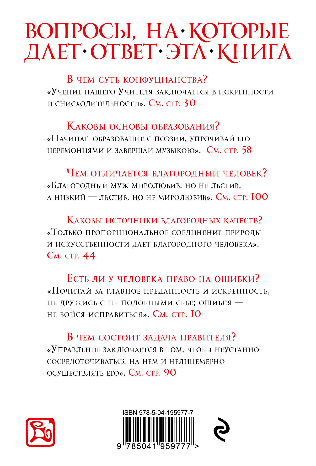 «Суждения и беседы» Конфуция - главная книга конфуцианства и, пожалуй, магистральный философский трактат всей китайской культуры. Многие века этот текст считался обязательным для заучивания в классическом образовании. Кроме того, это величайший литературный памятник, жемчужина древнекитайского языка и философии. Он знакомит читателя с мыслями одного из величайших учителей древности - Конфуция - чьи уроки стойкости, благородства и житейской мудрости не теряют актуальности по сей день. Книга входит в обязательную программу курса философии, а также будет полезна всем, кто интересуется историей и культурой Китая, Азии, историей философских учений. Серия «Великие идеи» представляет собой библиотеку выдающихся образцов человеческой мысли. В нее вошли ключевые труды мыслителей всех времен и народов, актуальные во все времена. Главные произведения философов с древнейших времен - от Конфуция и Платона до Фрейда и Ницше - откроют лучшие идеи мировой философии и помогут отыскать путь к самому себе.| Издательство | ООО "Издательство "Эксмо" |