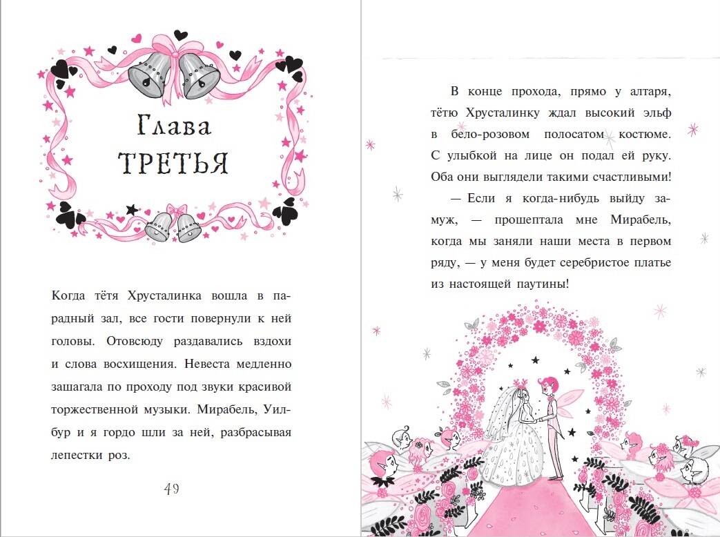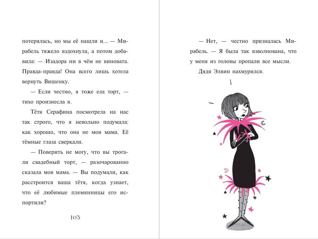 Изадору и её семью ждёт удивительный праздник: её тётя Хрусталинка выходит замуж! Свадебные колокольчики, цветочные венки, платье подружки невесты - волшебство, да и только! Но на свадьбу приехала Мирабель, кузина Изадоры, известная проказница. Вот и на этот раз не обошлось без её проделок: увидев великолепный свадебный торт, Мирабель решила уменьшиться с помощью магии и незаметно им полакомиться! Но её магия случайно задела Изадору и её младшую сестрёнку Вишенку! К ужасу Изадоры, малышка неожиданно пропала! Ой-ой, нужно срочно спасать Вишенку, иначе свадьба будет испорчена! Книги Гарриет Манкастер - феномен во всём мире. Они переведены на 32 языка. Эта история наполнена чудесами и праздничным настроением. Крупный шрифт, лёгкий слог, интересный сюжет - книга прекрасно подойдёт для самостоятельного чтения. Внутри - красивые чёрно-розовые иллюстрации. Также вас ждут вкусные рецепты и интересные идеи для праздника.| Издательство | ООО "Издательство "Эксмо" |