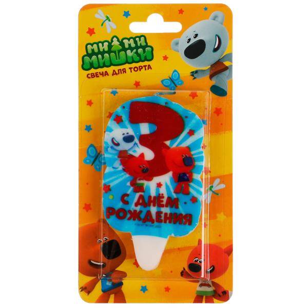 Аннотация: Свеча для торта Со стикером "3" Ми-ми-мишки блистер ЧУДО ПРАЗДНИК в кор.48шт