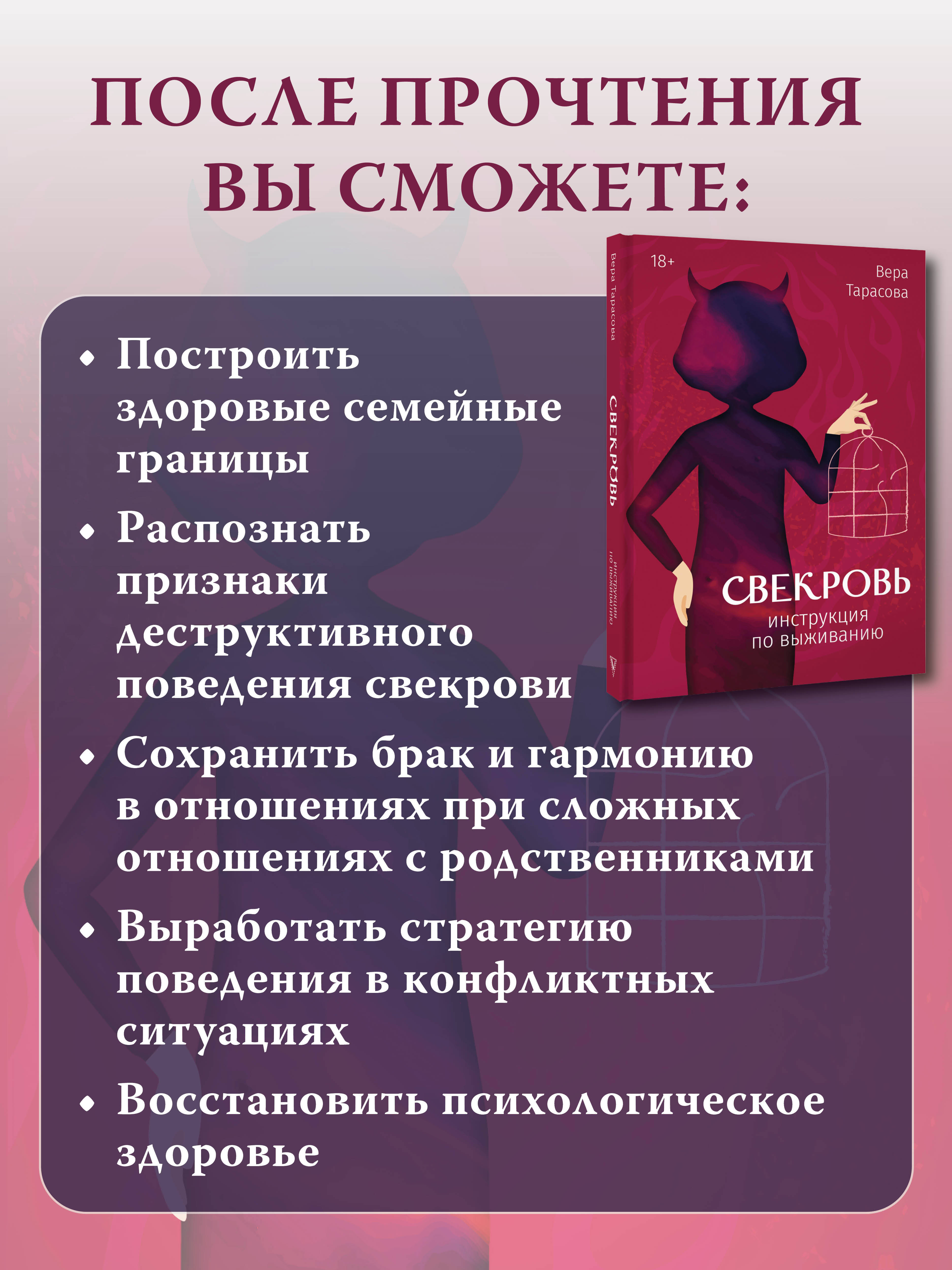 Свекровь отравляет вам жизнь? Чувствуете себя, как на минном поле, где каждое слово может вызвать взрыв? Тогда отложите успокоительное и возьмите в руки эту книгу! Психолог Вера Тарасова возьмет вас за руку и проведет по самым темным уголкам души свекрови, чтобы вы поняли, что вообще происходит! Откуда берутся эти "свекрови-монстры"? Дело в детстве, в нереализованных мечтах, или она просто прирожденная злодейка? Вместе вы разложите все по полочкам: кто такие маменькины сынки, как формируется созависимость и почему свекровь так отчаянно пытается разрушить ваш брак. Но самое главное - на страницах книги вы найдете реальные истории людей, столкнувшихся с подобными проблемами, и практические советы: как защитить себя, как выстроить границы, как разговаривать с мужем и как вернуть себе нормальную жизнь. Эта книга поможет вам решить следующие проблемы: • Восстановить здоровую иерархию в семье. • Разорвать созависимые отношения с токсичной свекровью. • Научиться противостоять женской конкуренции и манипуляциям. • Распознать и обезвредить методы нарциссической и психопатической свекрови. • Выстроить четкие личные границы и защитить свою территорию. • Преодолеть чувство вины и страха перед свекровью. • Создать счастливую и гармоничную семью, несмотря на деструктивное влияние извне.| Издательство | Издательство "АСТ" |