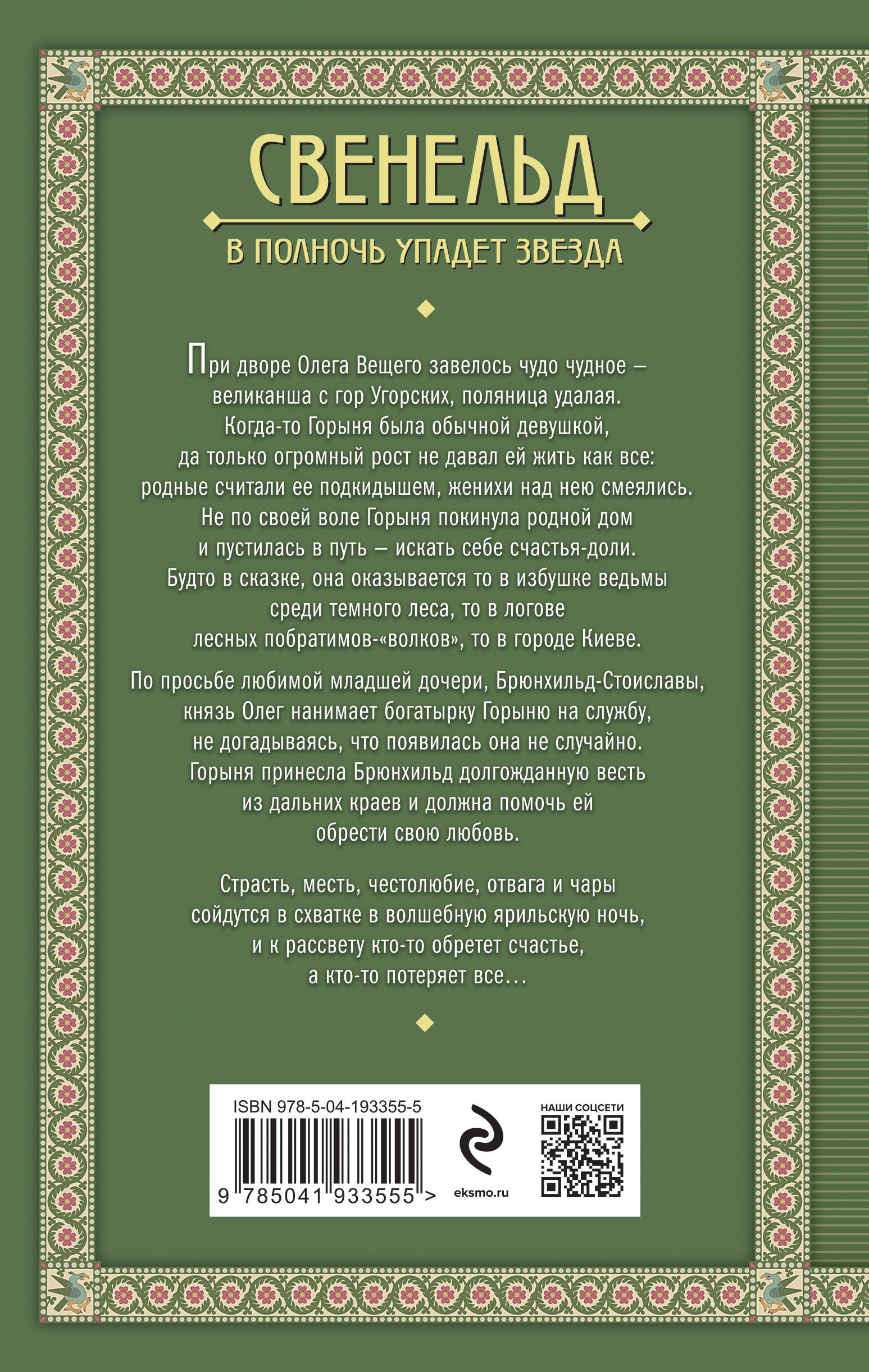 Как найти свое счастье, не задев при этом интересы своей земли и своего рода? А если твой отец сам Хельги Хитрый - Вещий Олег, чье имя звучит в преданиях по всему свету белому, а боевой стяг узнают от Варяжского моря до Хазарского? Золотистая Брюнхильд, дочь князя Киевского, - самая желанная невеста этой земли, на удачный брак которой и отец, и его подданные делают большие ставки. Ходит слух, что знаменитая Олегова удача отвернулась от него, и, возможно, породнившись с тем, кому судьба сейчас благоволит, князь сможет вернуть ее. Да только самый лучший кандидат, Амунд Плеснецкий, не подходит Олегу: он напоминает о подлости, совершенной князем Киевским и погубившей его собственного сына, наследника Киевского престола. Но дочь его Брюнхильд-Стоислава видит себя рядом только с князем Плеснецким, страстное чувство к которому вспыхнуло у нее мгновенно и навсегда. На чьей стороне будет победа - любви или ненависти, великанов-волотов или злых ведьм, сильного чувства или холодного расчета - в новой книге Елизаветы Дворецкой «Свенельд. В полночь упадет звезда».| Издательство | ООО "Издательство "Эксмо" |