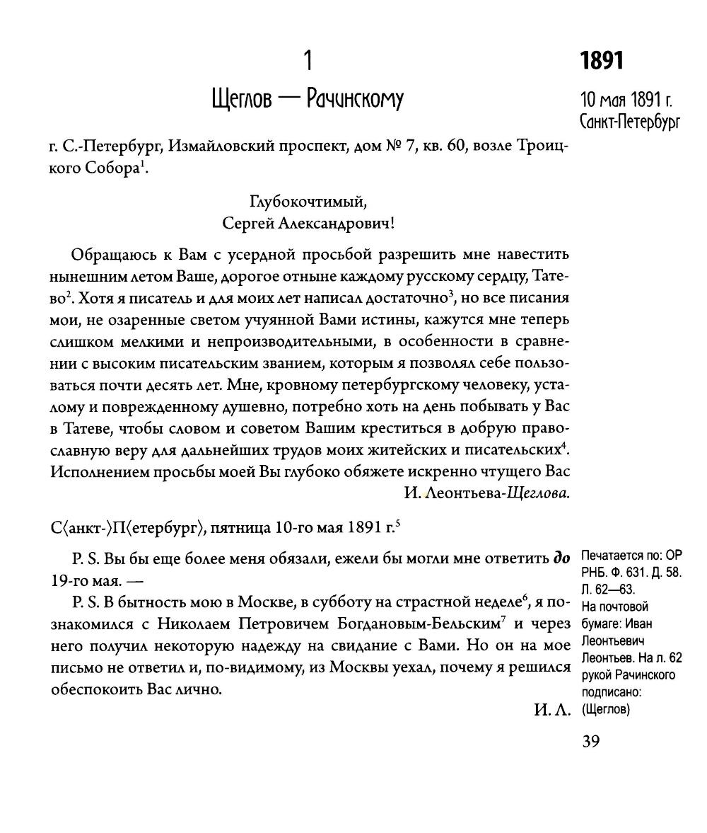 Сверхштатный ученик: Переписка С. А. Рачинского и И. Л. Леонтьева (Ивана Щеглова) (1891–1900)