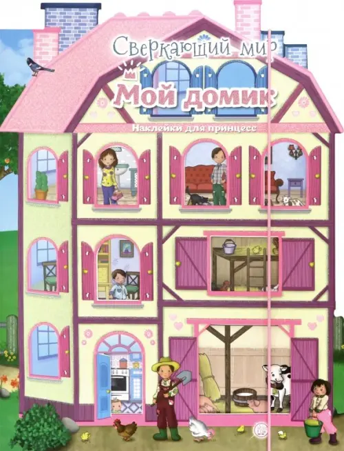 Книжка сделана в форме домика с прорезанными окошками и запирается замком-резинкой. Домик на обложке и наклейки внутри сверкают и переливаются словно по волшебству!