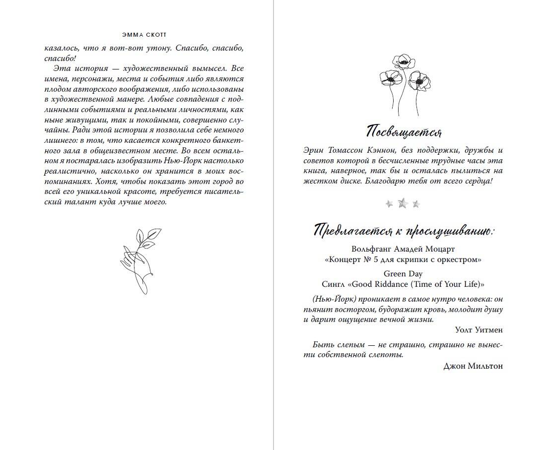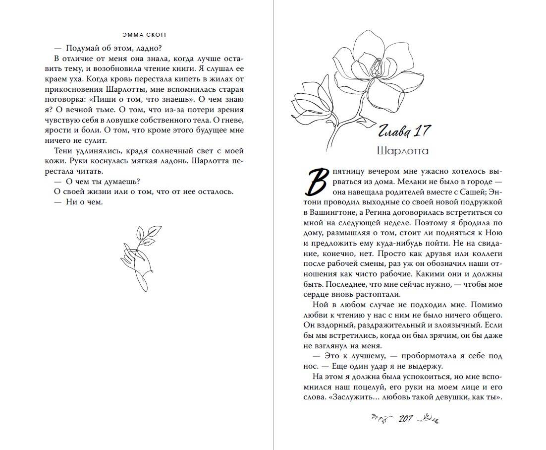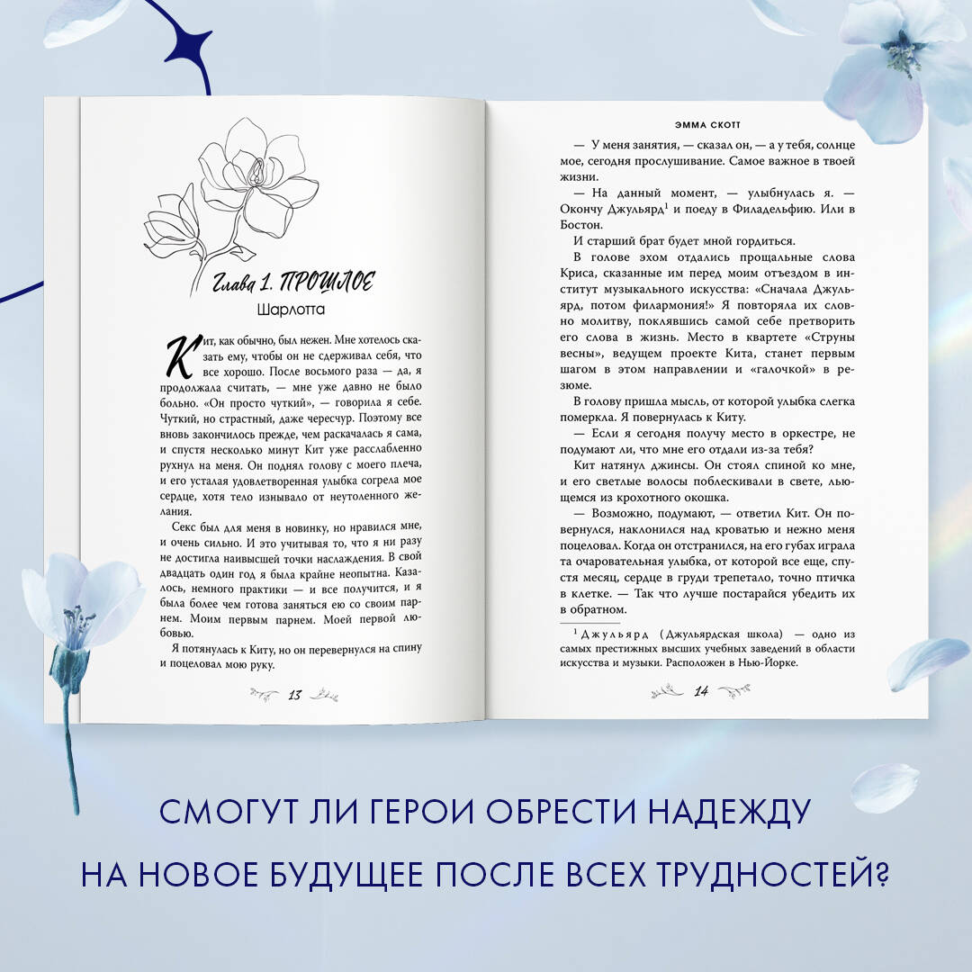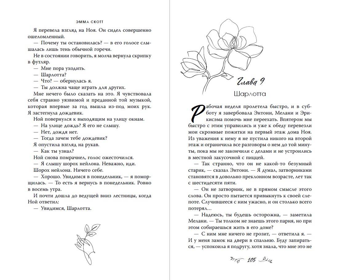 Романтические бестселлеры Эммы Скотт в новом, стильном оформлении. Удобный формат, мягкая обложка - все для того, чтобы не расставаться с любимыми героями. Уникальные яркие узоры на обрезе, блестящая фольга - собери всю коллекцию на своей полке! Книга про любовь виртуозной скрипачки, потерявшей свою внутреннюю музыку, и экстремала, лишившегося зрения. Но если свет не разглядеть в одиночку, возможно, кто-то другой сможет зажечь его для тебя? Музыка жила и расцветала в сердце Шарлотты, выливаясь в совершенную гармонию, наполненную любовью. Но трагедия разделила ее жизнь на Прошлое и Настоящее. Прошлое было светом, любовью и музыкой. Настоящее стало темнотой, холодом и тишиной. Адреналин был топливом для Ноя. А он сам - спортсменом-экстремалом. Пока очередной прыжок со скалы не обернулся крахом. И с тех пор его верным спутником стала кромешная тьма. Теперь каждую ночь ему снится кошмар: белый снег и голубое небо, золотые переливы заката и изумрудная вода. Все то, что он не увидит уже никогда. Жизнь, которую он знал, разрушена. Жизнь, о которой она мечтает, просто недостижима. Книга о настоящих чувствах и их способности стать путеводной звездой. Испытайте сильные эмоции и проведите выходные в компании романтической художественной литературы! Лучший выбор для любителей книг романтики.| Издательство | ООО "Издательство "Эксмо" |