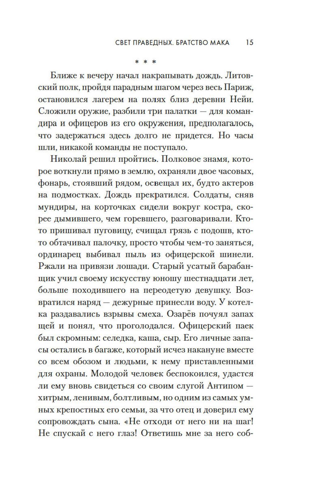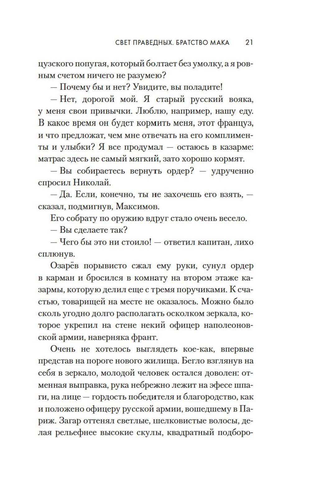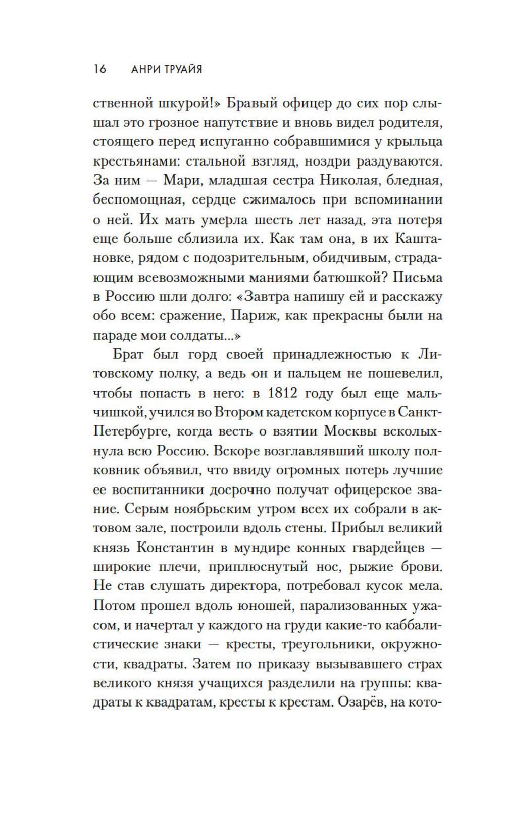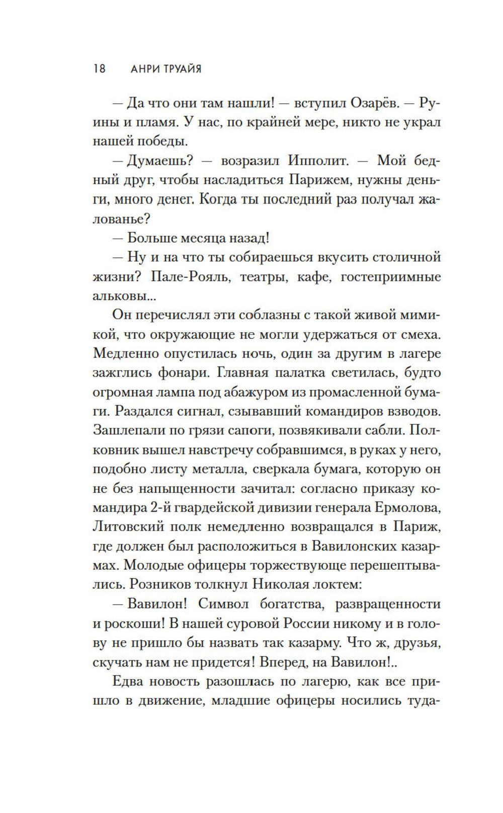 1814 год. Бонапарт повержен, русская армия победно входит в Париж. Здесь потрясающе красиво все: улицы, проспекты, соборы и площади. И еще - здесь потрясающе красивые женщины. Поручик Николай Озарёв поражен всем увиденным. Но главное впереди - он знакомится с Софи де Шамплит. Гордая, свободолюбивая красавица носит траур по умершему мужу и не сразу принимает знаки внимание русского офицера, сражавшегося против французской армии. Но в конце концов ему удается завоевать ее сердце. Николай клянется, что Софи ни разу не пожалеет о том, что доверила ему свою судьбу. И ни разу не пожалеет, что согласилась уехать с ним в далекую, незнакомую Россию. Так они оказываются в Санкт-Петербурге - холодном, величественном, но для Софи чужом городе. И это только первая часть их романа - и первая часть цикла Анри Труайя, чей цикл «Свет праведных», посвященный декабристам написан с большой любовью к российской истории и большой любовью к героям, прототипы которых и совершали эту историю.| Издательство | Азбука |