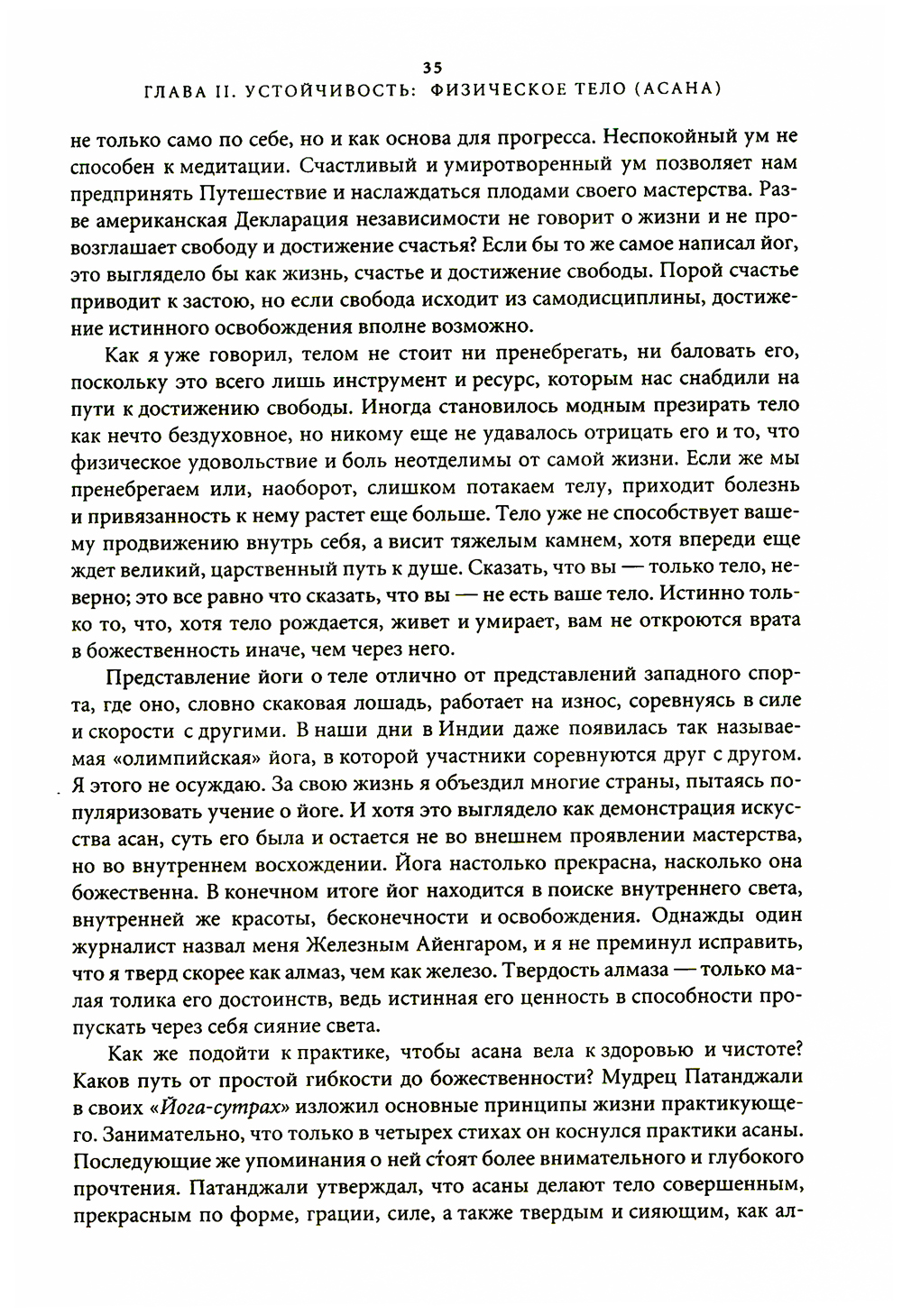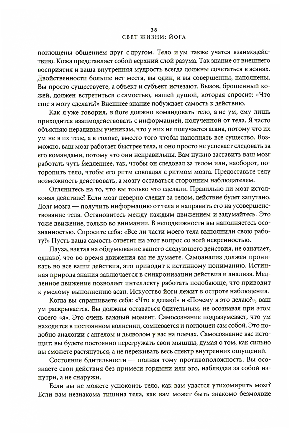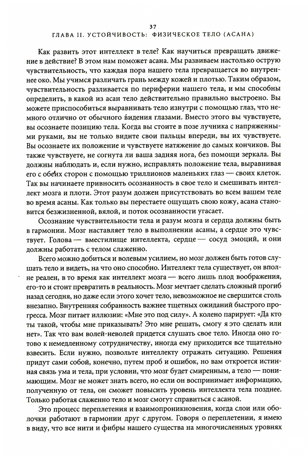 Вы держите в руках мировой бестселлер одного из самых выдающихся учителей йоги Б.К.С. Айенгара, основоположника школы йоги, которая носит его имя. Свой метод познания мира, свою философскую трактовку йоги он изложил в форме, доступной даже для начинающих. Автор не говорит, что все просто, и не дает пустых обещаний для доверчивых читателей, однако он абсолютно уверен, что каждому под силу совершить Путешествие внутрь себя в поиске цельности и внутренней свободы. В этом его убеждают собственный путь, собственный опыт, преодоление трудностей и даже смертельной болезни, которые не сломили его, а, напротив, выработали упорство и желание дойти до самой сути учения. Йога - универсальный путь, прекрасный путеводитель с правилами игры под названием Жизнь. Выполняя асаны, мы делаем не акробатические упражнения. Мы продвигаемся в поиске цельности, преодолевая внешние и внутренние препятствия на нашем пути. И, как остроумно замечает Айенгар, результат зависит от прилагаемых усилий: «Кто-то как минимум сможет самостоятельно завязать шнурки в восемьдесят лет, а кто-то постигнет таинство жизни».| Издательство | Альпина нон-фикшн |