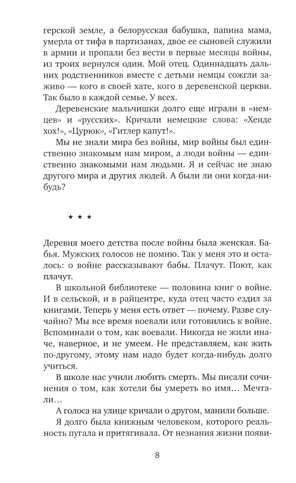 Светлана Александровна Алексиевич - всемирно известный белорусский прозаик, пишущий на русском языке. Лауреат Нобелевской премии по литературе «за многоголосое творчество - памятник страданию и мужеству нашего времени». В комплект входят пять книг: «У войны не женское лицо», «Чернобыльская молитва», «Цинковые мальчики», «Время секонд-хэнд», «Последние свидетели: соло для детского голоса».| Издательство | Время |