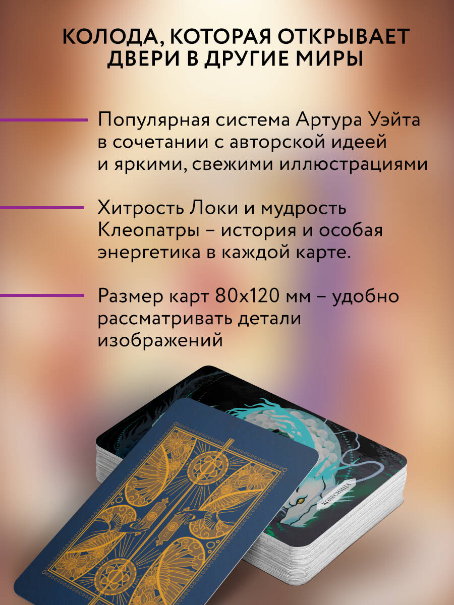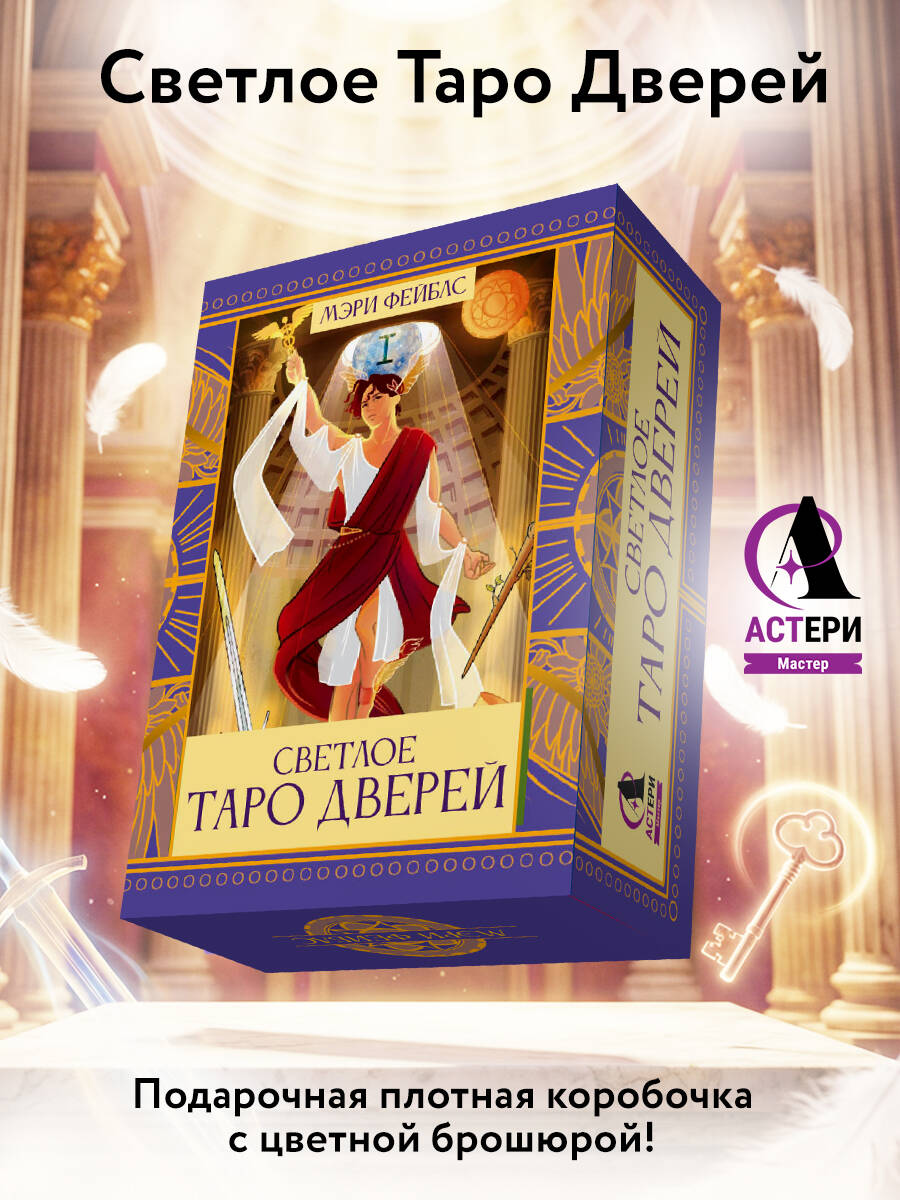 Откройте дверь в новые реальности c подарочным изданием Светлого Таро Дверей! Приятные на ощупь карты в коробочке из плотного картона. В комплект входит цветная брошюра с описанием карт. Здесь переплетаются миры Воды, Земли, Огня и Воздуха, а путь указывают известные мифологические и исторические фигуры: Локи, Меркурий, Цинь Шихуанди, Осирис. Каждая карта - это дверь в место, где вы найдете ответ на интересующие вопросы. Возможно, ответ находится в великолепном Древнем Риме, а может, вы отыщете его в Избушке на Курьих Ножках. Символика колоды, узнаваемые сюжеты, мудрые герои и невероятная энергетика каждой карты будут помогать вам в раскладах. Колода умело сочетает в себе известную систему Артура Уэйта и уникальную авторскую интерпретацию карт. Яркие и необычные иллюстрации не только превращают процесс работы с картами в действенный способ получить ответ на нужный вопрос, но и приносят эстетическое удовольствие, что позволяет настроиться на расклад. Карты сложены в коробочку с крышкой из плотного картона. В комплект входит цветная брошюра с QR-кодом на более подробную инструкцию. Медитируйте на карты, узнавайте себя и мир - колода поможет вам найти верную дверь.| Издательство | Издательство "АСТ" |