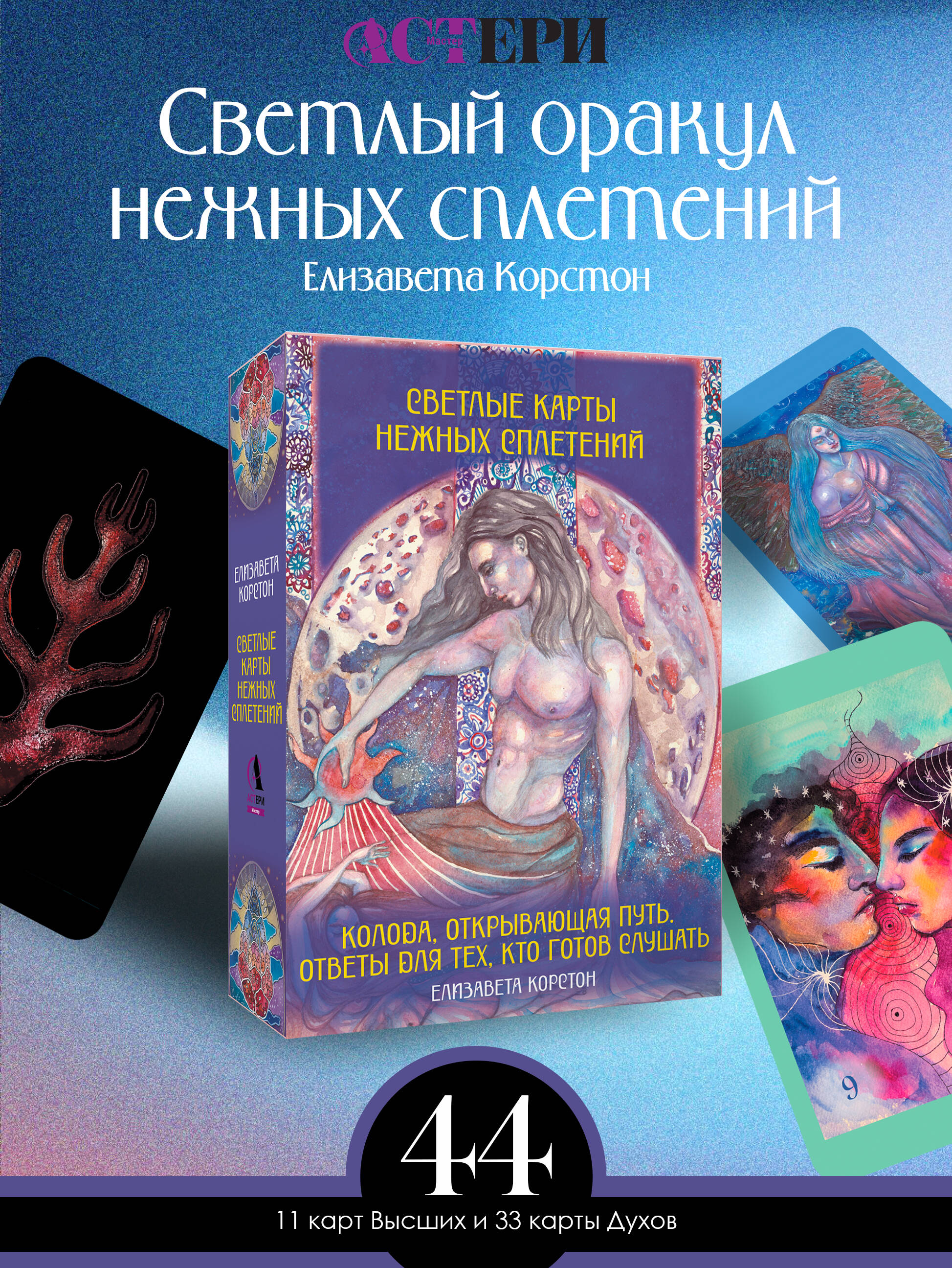 Наш мир - это переплетение смыслов и символов, которые рождают гармонию единства. Уникальный Оракул в ваших руках поможет разглядеть эти связи и заглянуть за вуаль, скрывающую тайны Вселенной. Автор - Елизавета Корстон - создала Оракул, основанный на идеях различных мировых философий: индийской религии, древних эпосов, мистики и непредсказуемого мира сновидений. Каждая карта - это тщательно продуманная картина со своим сюжетом и смыслами, которые человек находит и определяет для себя сам. Иллюстрации сделаны в различных традиционных техниках на холсте с помощью акварелей, акрила и масла. Колода состоит из 44 карт и снабжена подробным руководством, которое поможет вам ориентироваться в изображениях. Рассматривайте картины и погружайтесь в глубокое изучение окружающего мира и нитей, которые связывают нас со Вселенной и всем, что есть вокруг. Медитируйте на карты, ищите глубокие ответы на самые сложные вопросы - мудрость Оракула вам подскажет. Колода издается также в формате малой коробки под названием "Оракул нежных сплетений. Карты-медитации. Ответы на глубинные вопросы".| Издательство | Издательство "АСТ" |