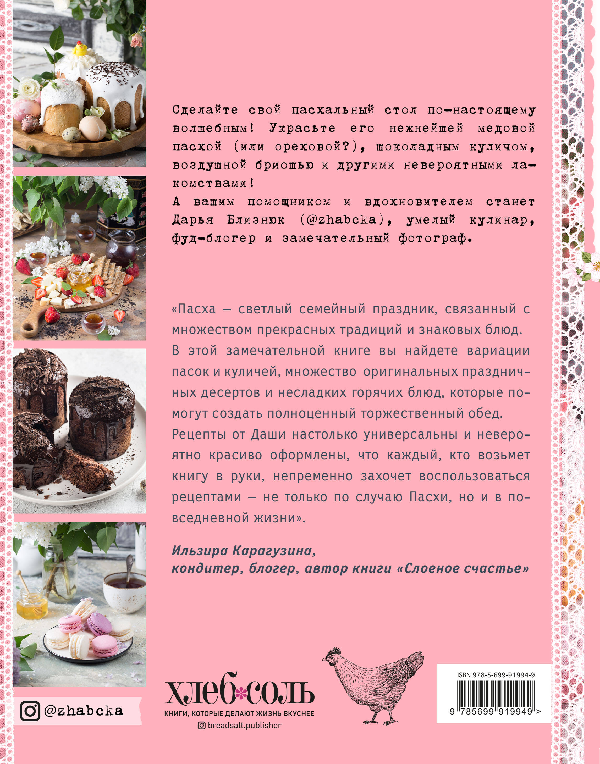 Сделайте свой пасхальный стол по-настоящему волшебным! Украсьте его нежнейшей медовой пасхой (или ореховой?), шоколадным куличом, воздушной бриошью и другими невероятными лакомствами! А вашим помощником и вдохновителем станет Дарья Близнюк (@zhabcka), умелый кулинар, фуд-блогер и замечательный фотограф. Загляните под обложку - и мигом перенеситесь в волшебный праздничный мир, где витает аромат горячих куличей, прыгают пасхальные зайцы и благоухают нарциссы. Научитесь готовить восемь видов пасх - от простой заварной до нежной кешью-пасхи без творога. Испеките ароматный кулич - который из шести разных вам приглянулся? Приготовьтесь увидеть волшебное исчезновение печенья в виде глазуньи, хрустящих пряников и маленьких лимонных чизкейков! А в завершение праздничного застолья торжественно внесите сытный пирог со шпинатом, сочную буженину или аппетитную свинину с томатами и оливками. И самое главное, не забудьте про основной ингредиент - любовь. Светлой Пасхи!| Издательство | ООО "Издательство "Эксмо" |