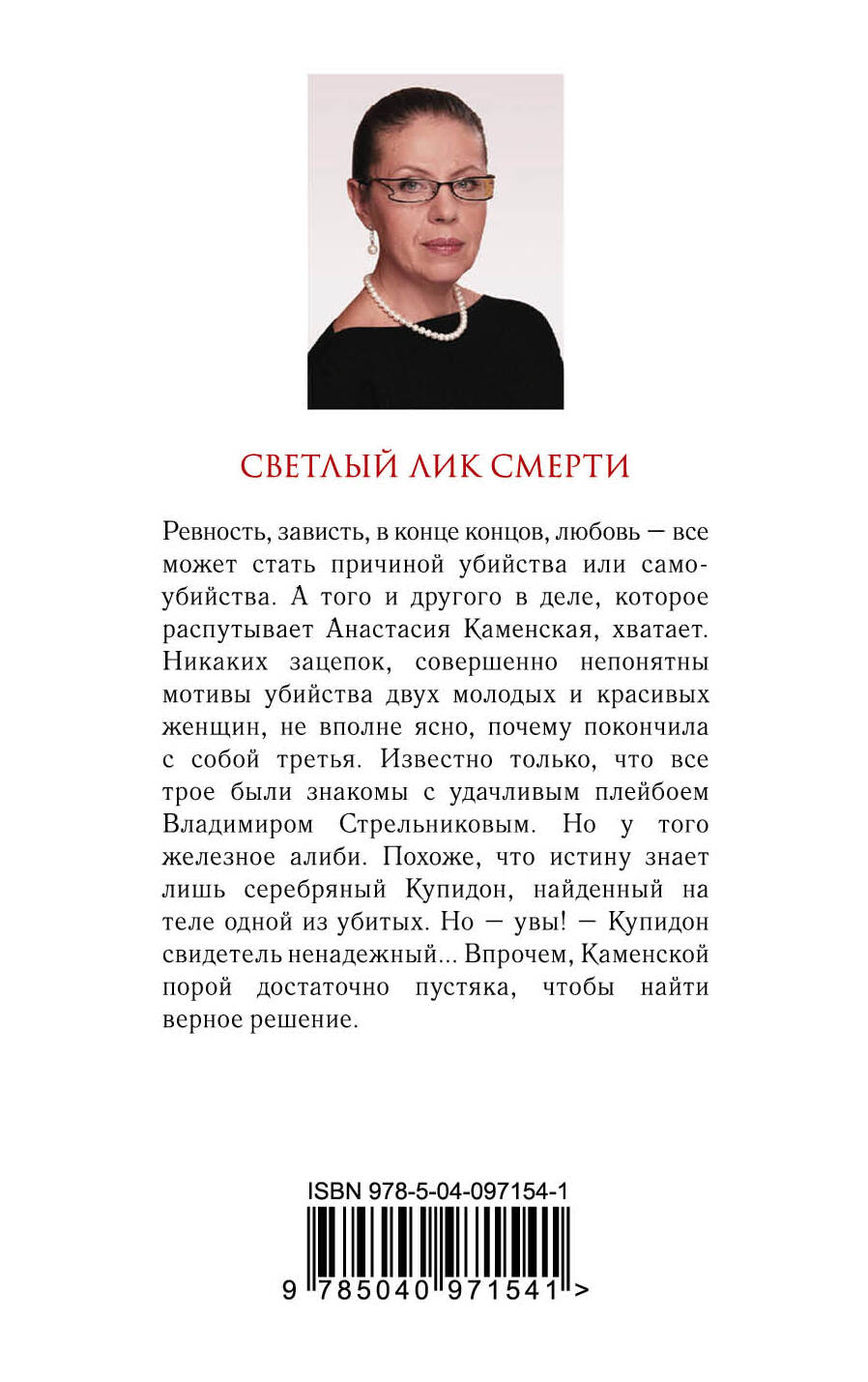 Ревность, зависть, в конце концов, любовь - всё может стать причиной убийства или самоубийства. А того и другого в деле, которое распутывает Анастасия Каменская, хватает. Никаких зацепок, совершенно непонятны мотивы убийства двух молодых и красивых женщин и не вполне ясно, почему покончила с собой третья. Известно только, что все трое были знакомы с удачливым плейбоем Владимиром Стрельниковым. Но у того железное алиби. Похоже, что истину знает лишь серебряный Купидон, найденный на теле одной из убитых. Но - увы! - Купидон свидетель ненадежный... Впрочем, Каменской порой достаточно пустяка, чтобы найти верное решение. «Маринина не только пишет детективные романы, но и отвечает на вечные вопросы. Автор относится к своим читателям как добрый и опытный учитель к ученикам, которые нуждаются в поддержке, подсказке и направлении на верный путь. Оптимистичная и практичная в своей дидактике, Маринина ставит перед собой вопрос "как жить" и старается помочь читателю найти свой путь к лучшей жизни в сегодняшнем мире. Своими детективами Маринина пишет современный роман "воспитания чувств": основная цель автора - воспитание посредством развлечения». - Анатолий Вишевский, Гринелльский колледж, США «Многие романы Александры Марининой в России экранизированы, а в Германии переработаны в радиопьесы. Исходя из того, что цель этих обработок - захватывать зрителей и слушателей таким же образом, как захвачены читатели, то фильм и радиопьеса являются не только дополнительными художественными произведениями, но и интересными интерпретациями, которые проникли в тайну успеха Александры Марининой». - Сара Хэги, Кельнский университет, Германия «В диалогах художественной и тривиальной литературы можно обнаружить разные способы стилизации "устности", чтобы достичь впечатления спонтанного разговора. Обиходная речь в романах А. Марининой отличается необыкновенно высокой степенью оживленности, что выражается, между прочим, в разных формах обращения собеседников, в различных оттенках вежливости и в эмоциональности используемой лексики». - Вольфганг Штадлер, Университет имени Леопольда Францена, Инсбрук, Австрия| Издательство | ООО "Издательство "Эксмо" |
