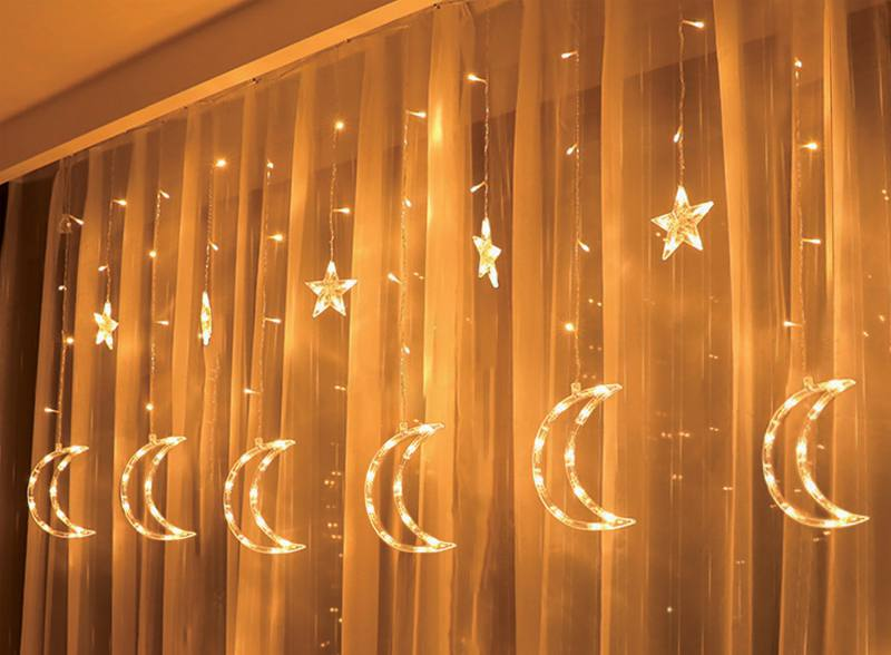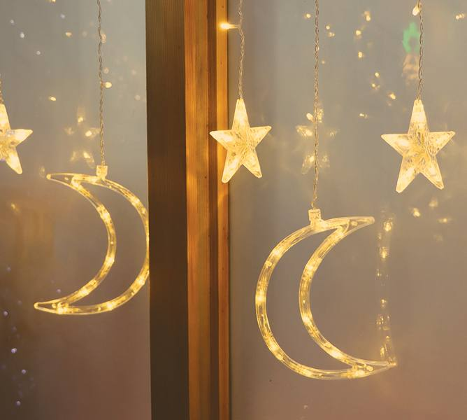 Светодиодный занавес MOON | Звезды и луны | теплый белый свет
