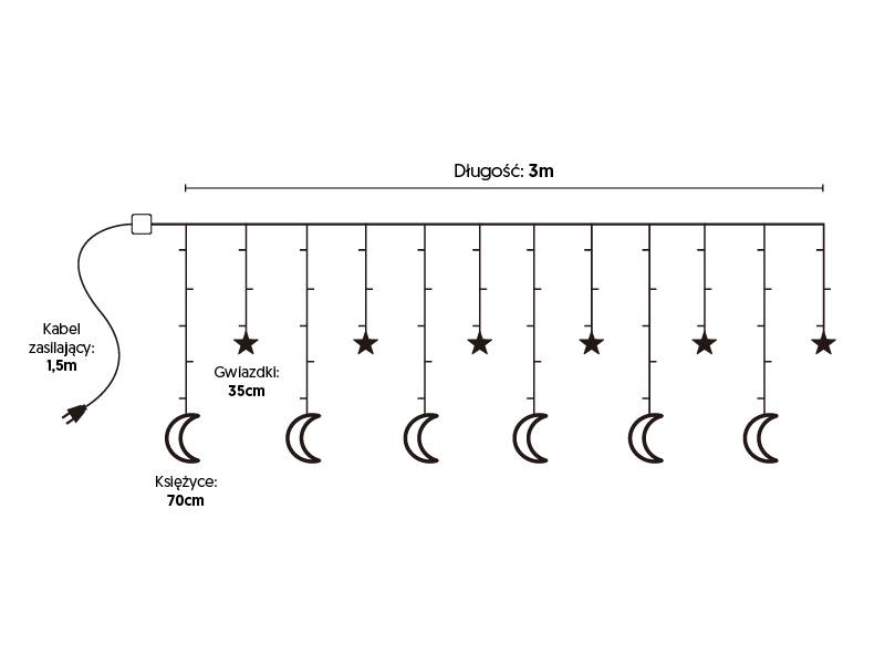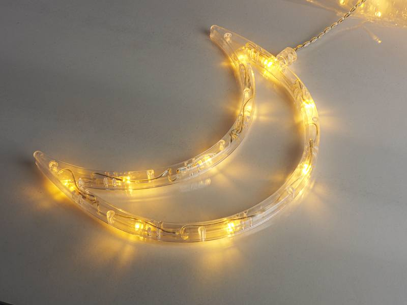 Гирлянды выполнены в инновационной форме свисающих сосулек. По сравнению с традиционными светодиодными нитями, гирлянды состоят из свисающих сегментов, которые образуют занавес. Каждый сегмент заканчивается поочередно луной и маленькой звездой.