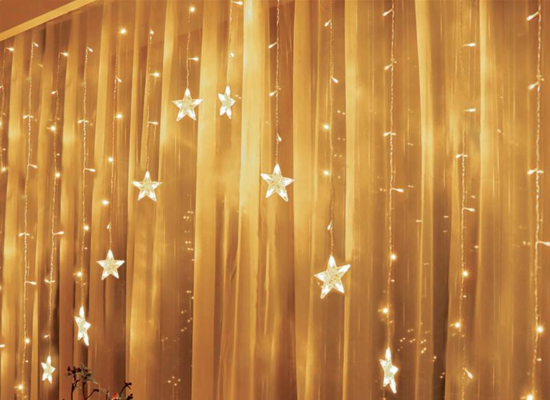 Светодиодный занавес Звезды, теплый белый свет, 136 x LED, 3M, 230V, Indoor