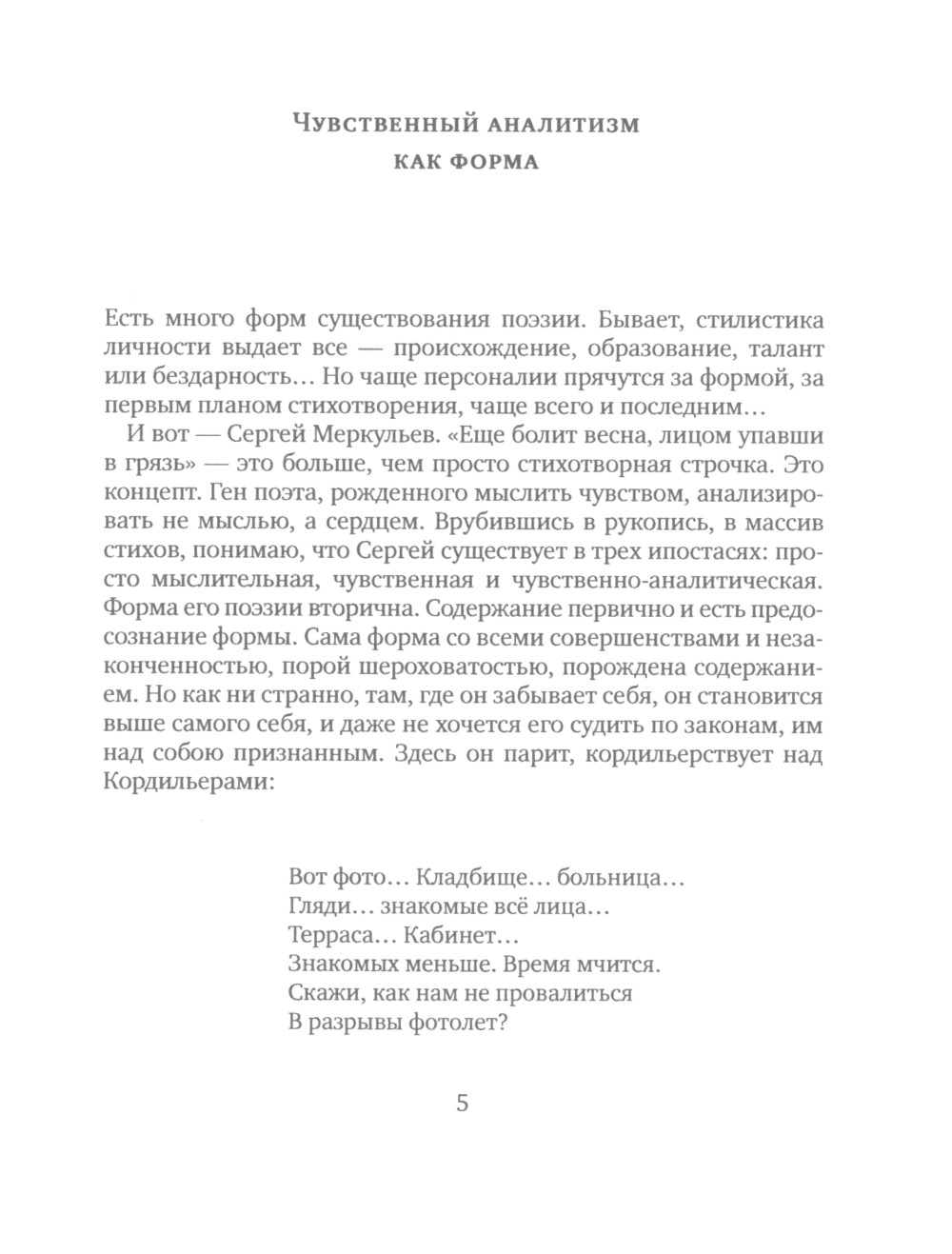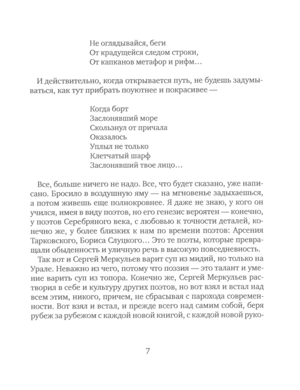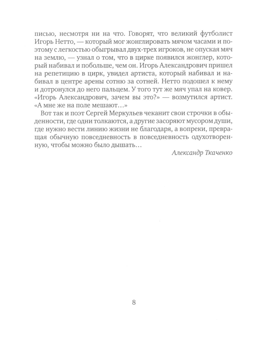 Сергей Меркульев - автор одиннадцати поэтических сборников. Писать стихи начал еще в семидесятые годы, первые журнальные публикации появились спустя десять лет, а книги начали выходить только с конца девяностых. Причина столь долгого пути к читателю - самобытность его стихотворений, в которых не нашлось места воспеванию действительности. Поэзию С. Меркульева отличает высокая степень вольности и неожиданная метафоричность. По словам О. Седовой, «автор мастерски играет со словом» и вкладывает в свои строки «глубинное философское содержание». В настоящий сборник вошли стихотворения узнаваемой стилистики поэта, ранее отнесенной по ведомству авангарда, а ныне оказавшейся в движении мейнстрима.| Издательство | Время |