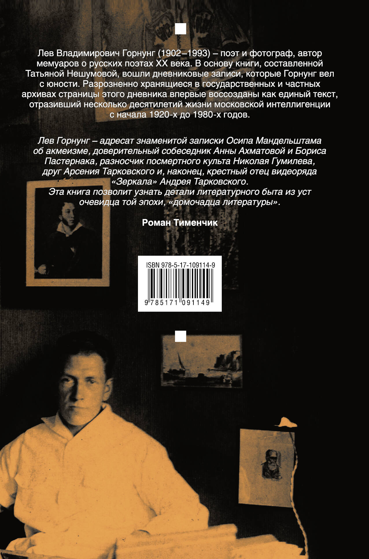 Лев Владимирович Горнунг (1902-1993) - поэт и фотограф, автор мемуаров о русских поэтах XX века. В основу книги, составленной Татьяной Нешумовой, вошли дневниковые записи, которые Горнунг вел с юности. Разрозненно хранящиеся в государственных и частных архивах страницы этого дневника впервые воссозданы как единый текст, отразивший несколько десятилетий жизни московской интеллигенции с начала 1920-х до 1980-х годов. В книгу также квлючены ранее не публиковавшиеся мемуарные очерки, дополняющие дневник, а также небольшая хрестоматия упоминаемых стихотворений. Издание снабжено вступительной статьей, подробным комментарием и именным указателем.| Издательство | ИЗДАТЕЛЬСТВО "АСТ" |