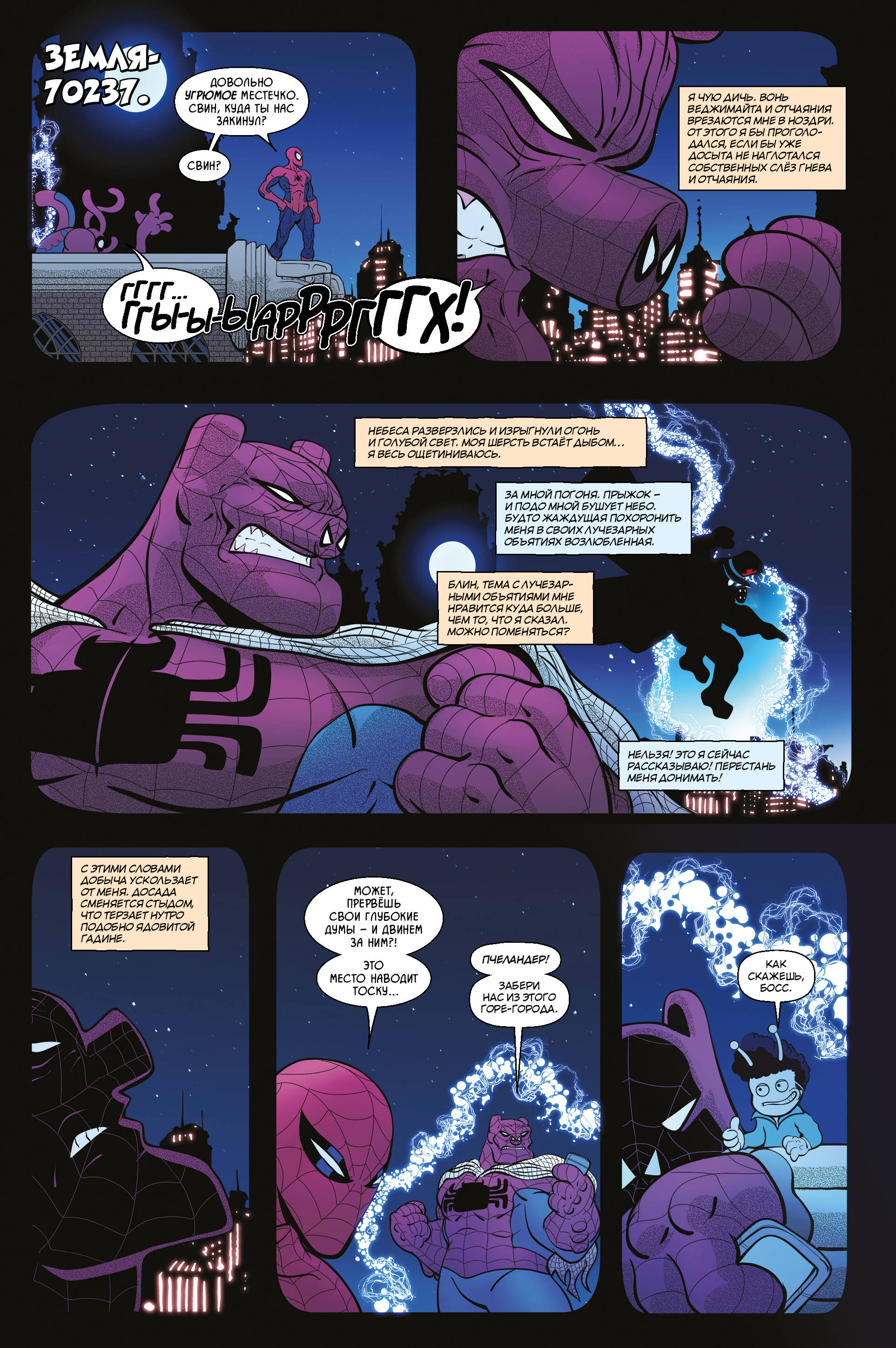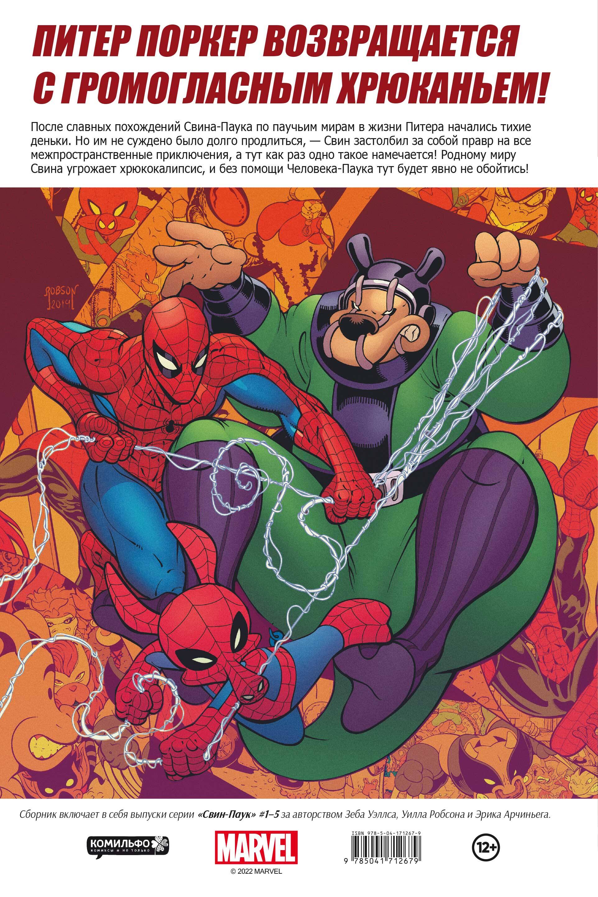Питер Поркер возвращается с громогласным хрюканьем! После славных похождений Свина-Паука по паучьим мирам в жизни Питера начались тихие деньки. Но им не суждено было долго продлиться, - Свин застолбил за собой правр на все межпространственные приключения, а тут как раз одно такое намечается! Родному миру Свина угрожает хрюкокалипсис, и без помощи Человека-Паука тут будет явно не обойтись! Сборник включает в себя выпуски серии «Свин-Паук» #1-5 за авторством Зеба Уэллса, Уилла Робсона и Эрика Арчиньега.| Издательство | ООО "Издательство "Эксмо" |