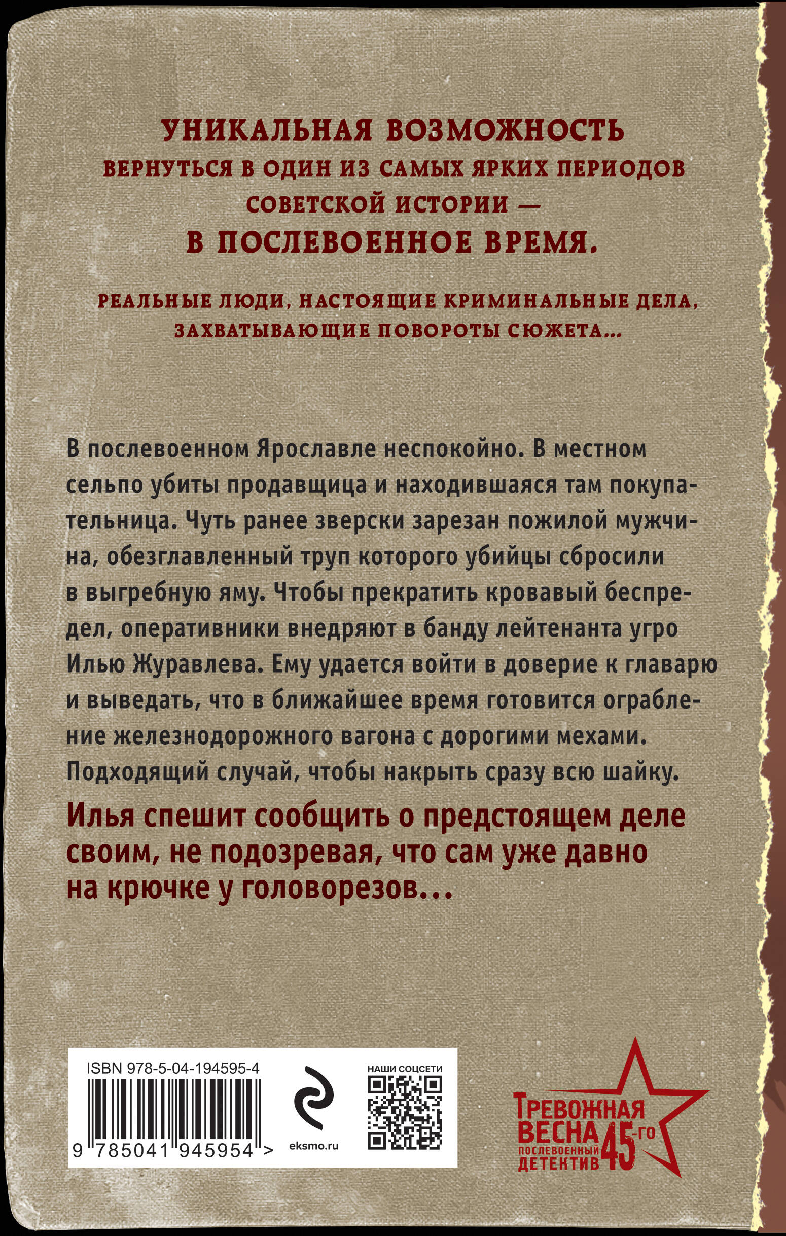 В послевоенном Ярославле неспокойно. В местном сельпо убита продавщица и находившаяся там покупательница. Чуть ранее зверски зарезан пожилой мужчина, обезглавленный труп которого убийцы сбросили в выгребную яму. Чтобы прекратить кровавый беспредел, оперативники внедряют в банду лейтенанта угро Илью Журавлева. Ему удается войти в доверие к главарю и выведать, что в ближайшее время готовится ограбление железнодорожного вагона с дорогими мехами. Подходящий случай, чтобы накрыть сразу всю шайку. Илья спешит сообщить о предстоящем деле своим, не подозревая, что сам уже давно «на крючке» у головорезов… Уникальная возможность вернуться в один из самых ярких периодов советской истории - в послевоенное время. Реальные люди, настоящие криминальные дела, захватывающие повороты сюжета. Персонажи, похожие на культовые образы фильма «Место встречи изменить нельзя». Дух времени, трепетно хранящийся во многих семьях. Необычно и реалистично показанная «кухня» повседневной работы советской милиции.| Издательство | ООО "Издательство "Эксмо" |