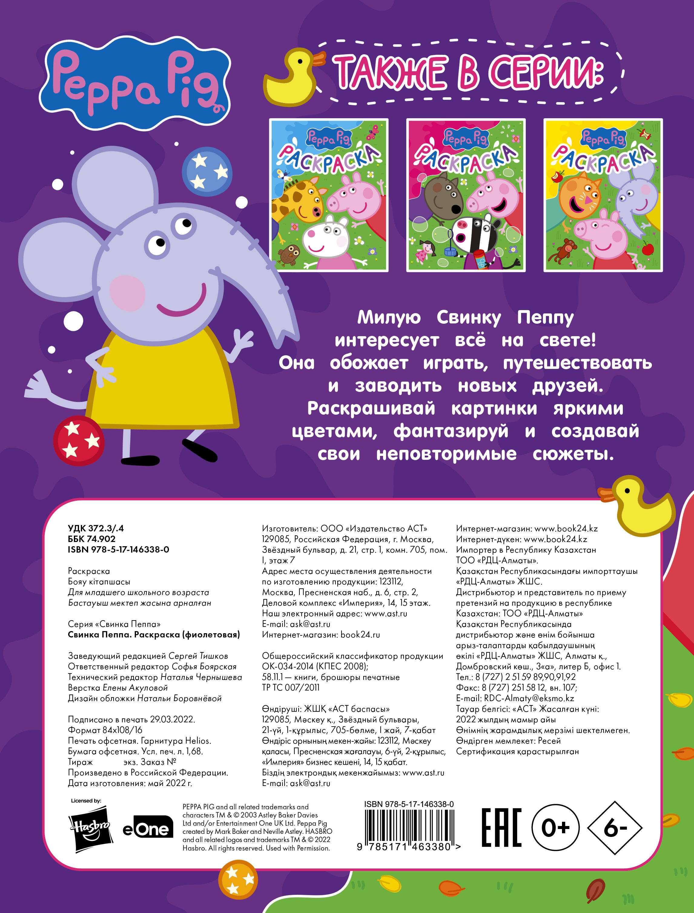 Аннотация: Свинка Пеппа. Раскраска (фиолетовая)