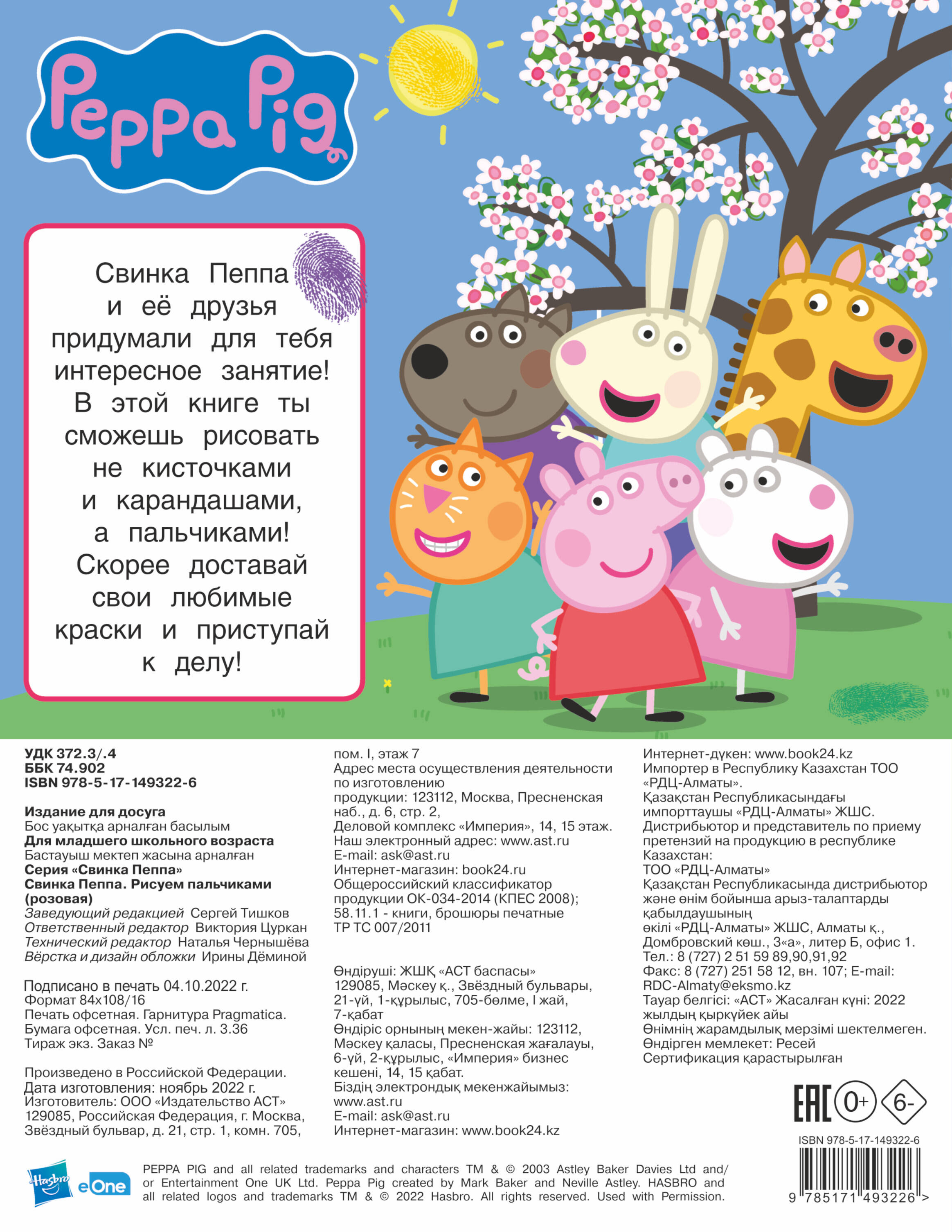 Свинка Пеппа и её друзья придумали для тебя интересное занятие! В этой книге ты сможешь рисовать не кисточками и карандашами, а пальчиками! Скорее доставай свои любимые краски и приступай к делу!| Издательство | ИЗДАТЕЛЬСТВО "АСТ" |