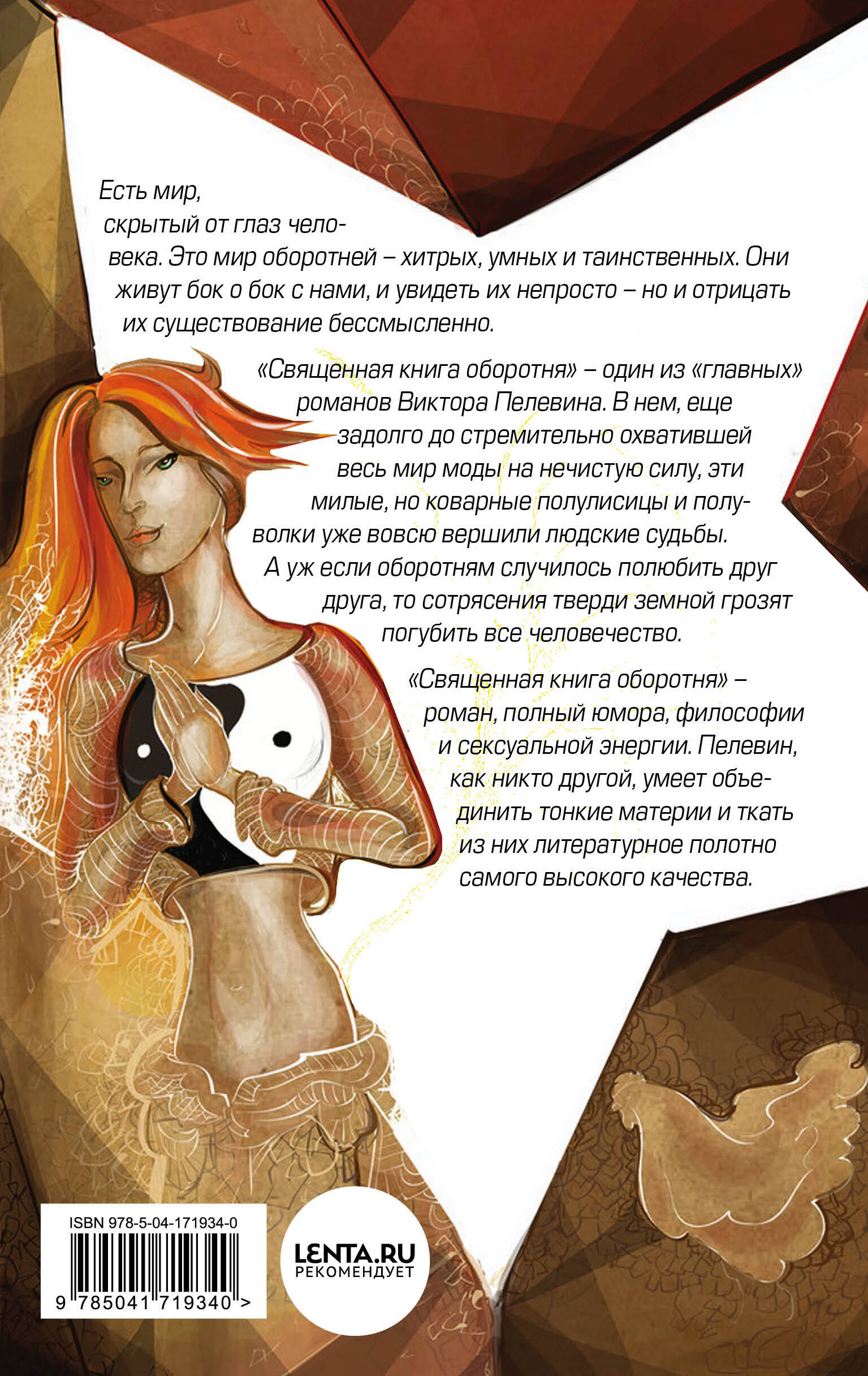 Есть мир, скрытый от глаз человека. Это мир оборотней - хитрых, умных и таинственных. Они живут бок о бок с нами, и увидеть их непросто, - но и отрицать их существование бессмысленно. «Священная книга оборотня» - один из «главных» романов Виктора Пелевина. В нем, еще задолго до стремительно охватившей весь мир моды на нечистую силу, эти милые, но коварные полулисицы и полуволки уже вовсю вершили людские судьбы. А уж если оборотням случилось полюбить друг друга, то сотрясения тверди земной грозят погубить все человечество. «Священная книга оборотня» - роман, полный юмора, философии и сексуальной энергии. Пелевин, как никто другой, умеет объединить тонкие материи и ткать из них литературное полотно самого высокого качества. Роман переиздается в культовой серии «Народное собрание сочинений», которая за последние десять лет успела стать букинистической редкостью. Книга проиллюстрирована работами победителей конкурса работ для Виктора Пелевина.| Издательство | ООО "Издательство "Эксмо" |